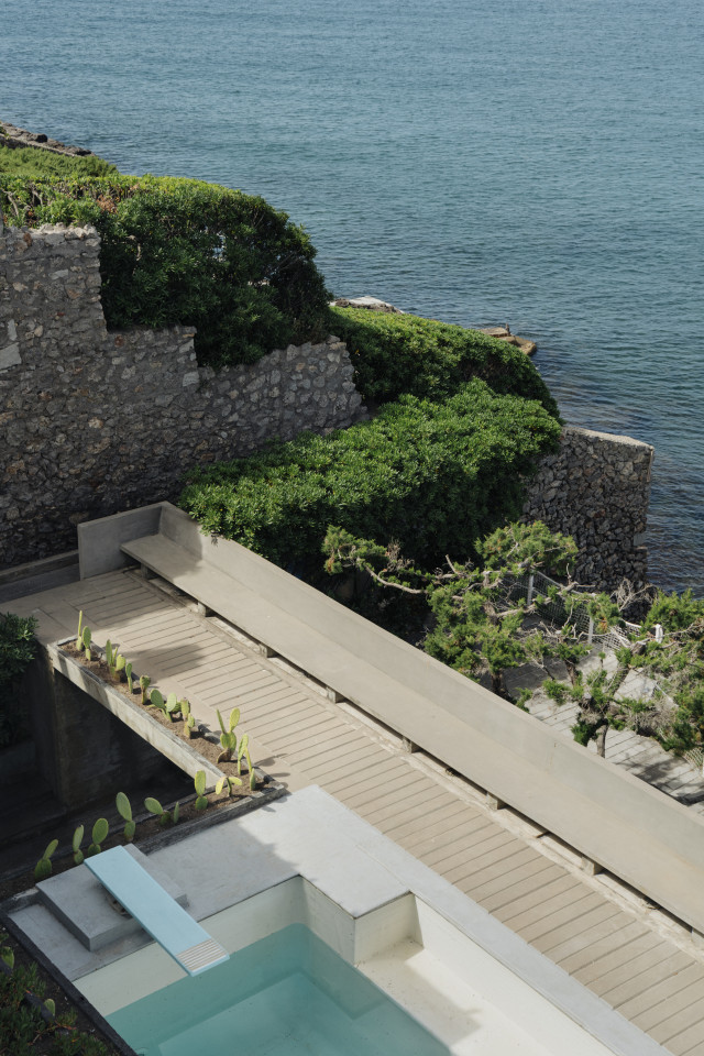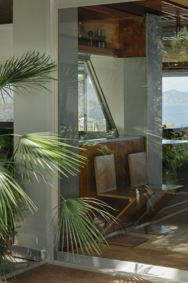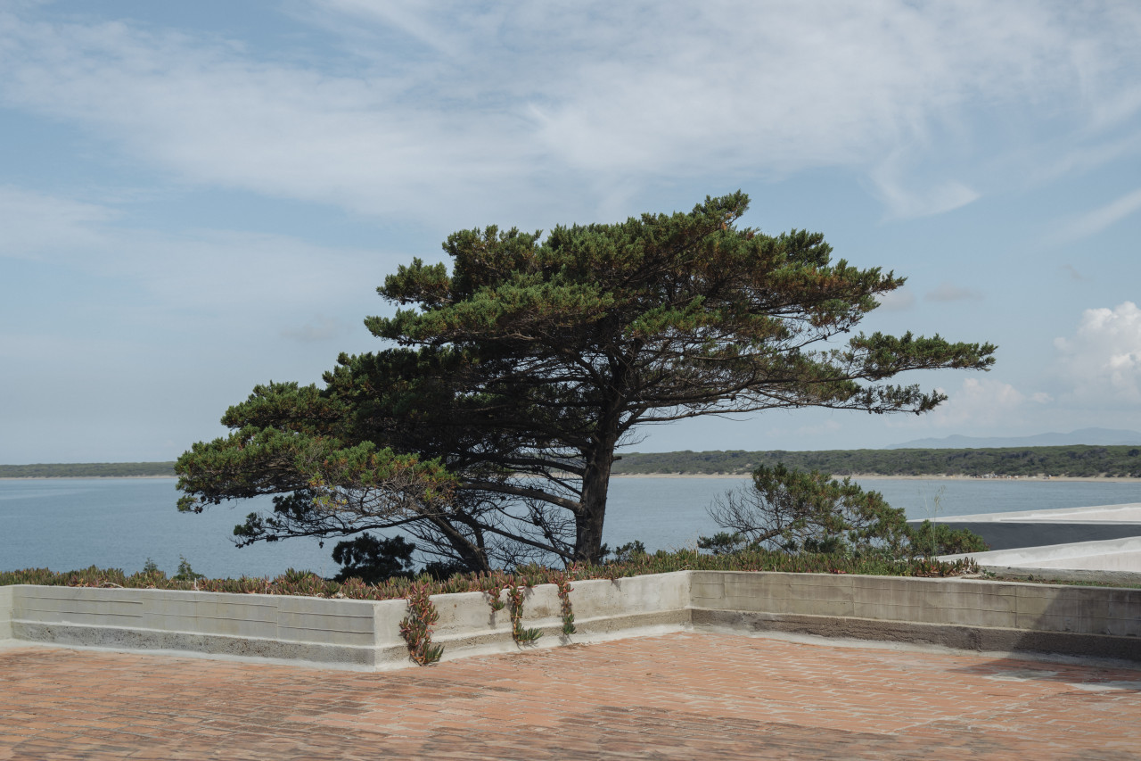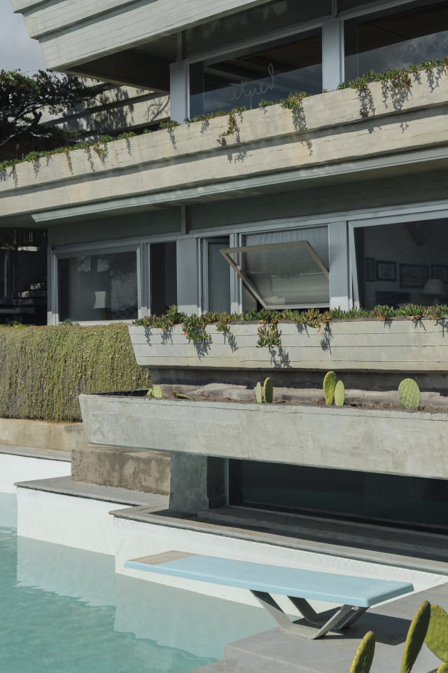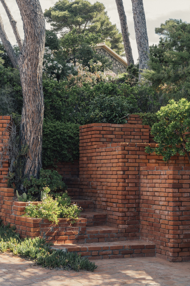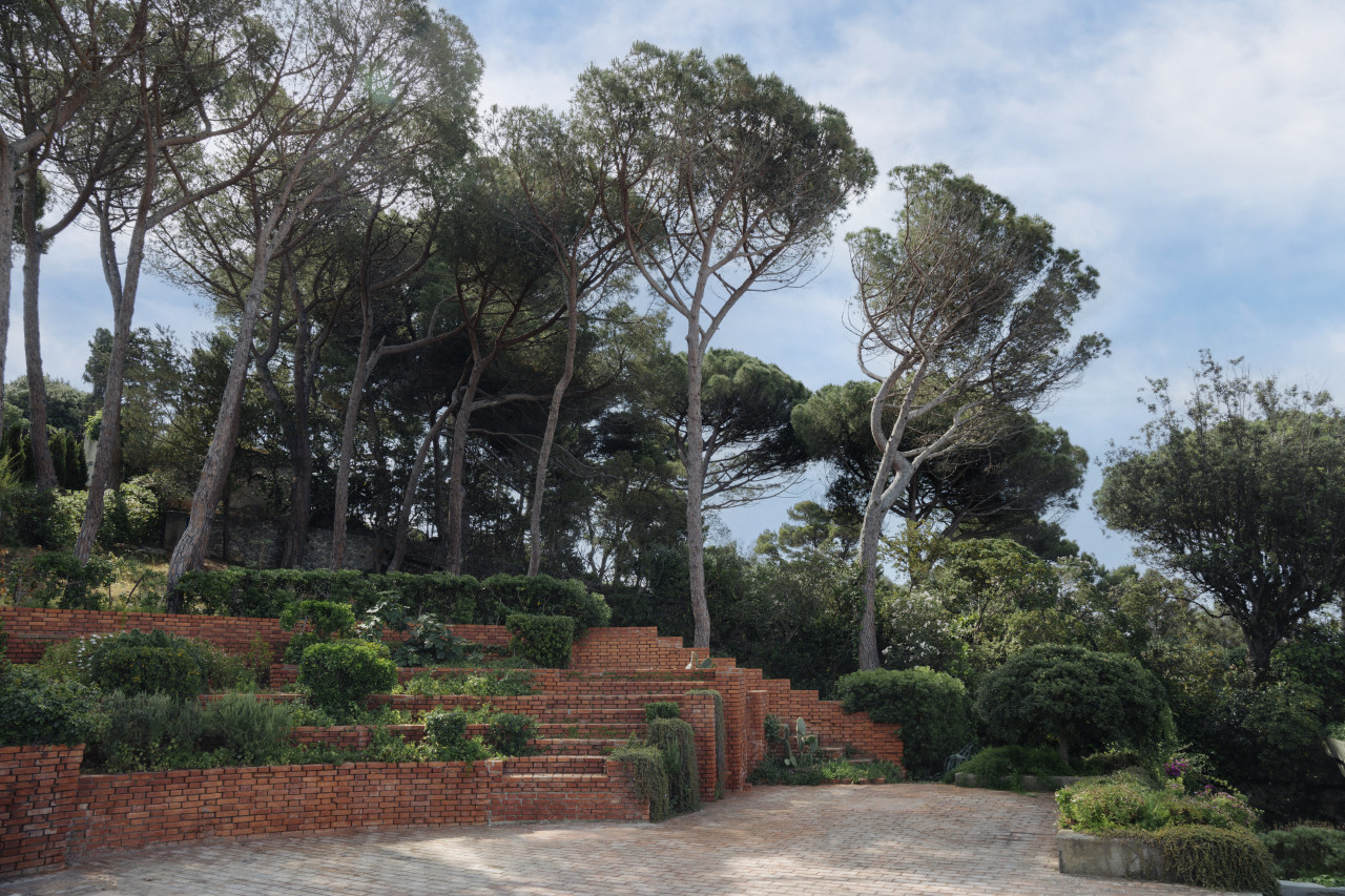 Die Außenarchitektur setzt diese Geschichte fort - gealterte Putzfassaden zeigen Spuren von Zeit und Witterung, während die umliegenden Gärten und Terrassen eine nahtlose Fortsetzung der Raumsprache des Gebäudes bilden. Dies ist ein Ort der skulpturalen Formen und zeitlosen Materialien, an dem die Architektur selbst zum visuellen Thema wird.