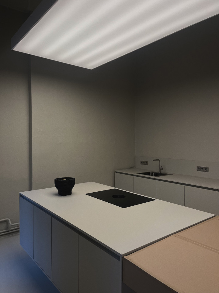 Die zur Verfügung stehende Fläche ist das Studio's eigene Galeriefläche mit insgesamt 170 Quadratmetern, zwei Bädern, einer riesigen Showküche mit Lichtdecke, einer Büro/Esszimmer-Situation und natürlich der riesigen Galeriefläche. Der gesamte Galerieraum hat einen schönen Vorgarten, weit geöffnete Fenster zur Straßenecke und 3,90m hohe Decken mit Stuck.