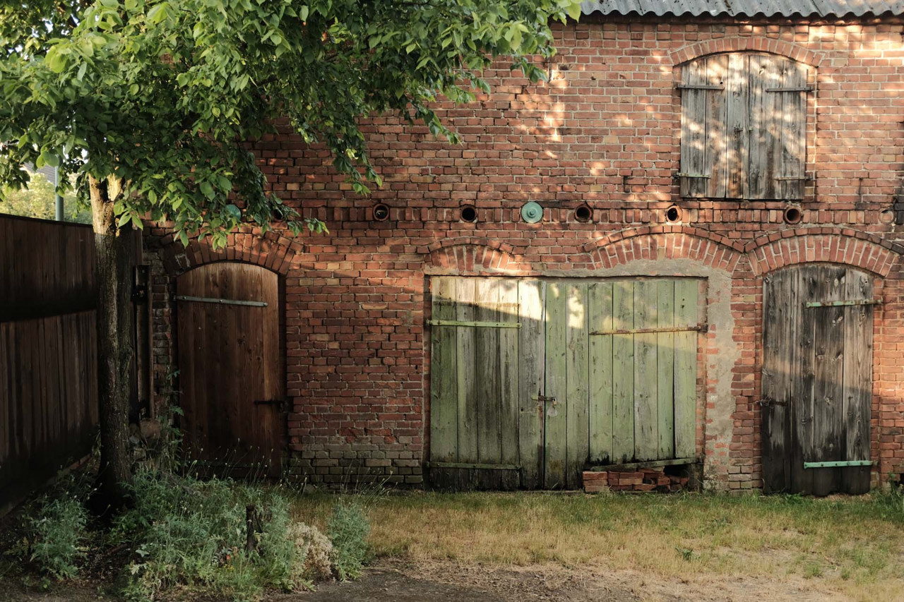 Umgeben von endlosen Feldern, Wiesen und Wäldern ist die Landschaft um das idyllische Dorf in der Uckermark ruhig und weitläufig. Am Rande des Dorfes liegt dieser freistehende Dreiseithof, auf dem nur gelegentlich ein Kranich zu sehen ist. Abgesehen von saisonalen landwirtschaftlichen Aktivitäten oder dem seltenen vorbeifahrenden Auto, herrscht auf dem 7.000 Quadratmeter großen Gartengrundstück Ruhe. Zum Anwesen gehören ein Wohnhaus, ein Stall und ein Schuppen sowie eine historische, für die Region typische Tabakscheune aus Holz.