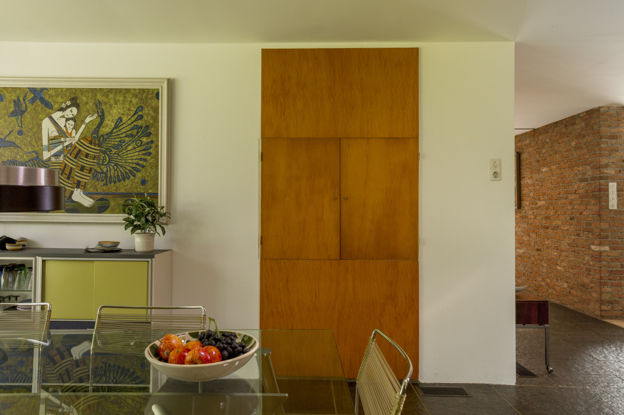 Dieses wunderschön erhaltene, moderne Haus aus der Mitte des letzten Jahrhunderts liegt in einer ruhigen Waldlandschaft und bietet ein beeindruckendes Gleichgewicht aus architektonischem Charme und natürlicher Ruhe - perfekt für Fotoshootings, Filmproduktionen und kreative Rückzugsorte.