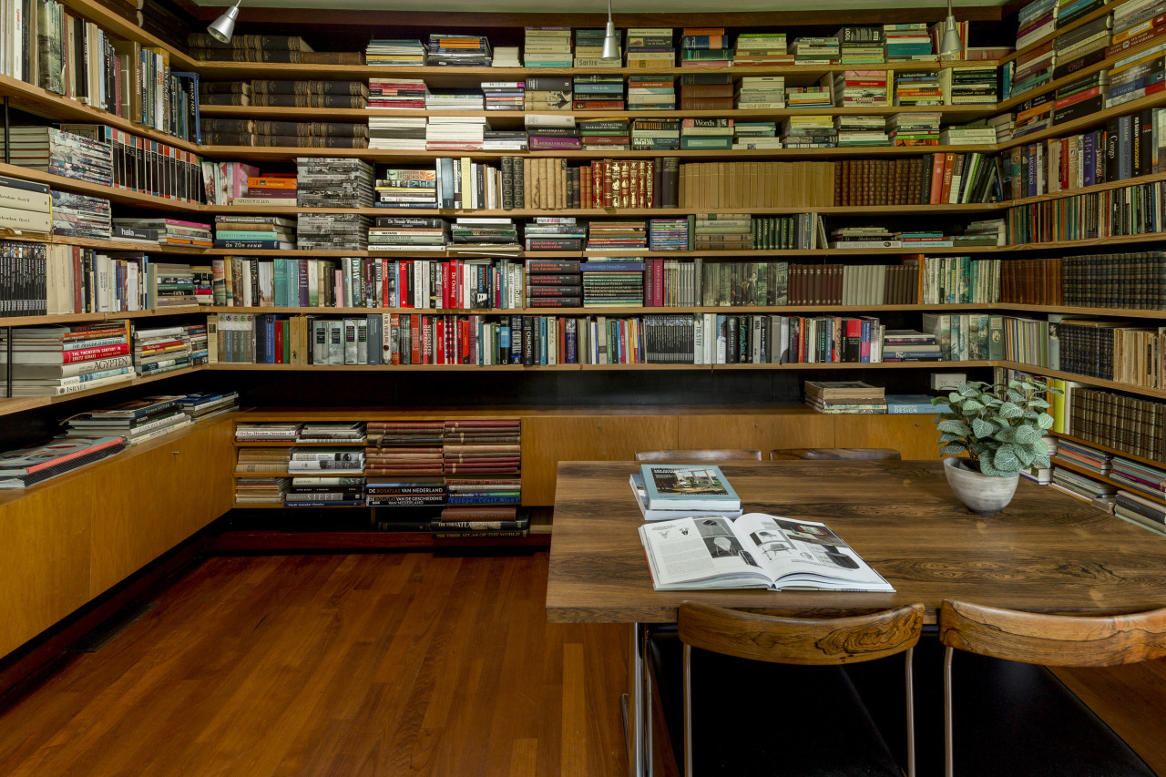 Im Inneren ist der Raum eine Zeitkapsel von Vintage-Eleganz. Original holzgetäfelte Wände, Retro-Möbel und farbenfrohes Dekor schaffen eine einzigartige, charaktervolle Kulisse. Mehrere Sitzbereiche sind mit Möbeln aus der Mitte des Jahrhunderts, stimmungsvoller Beleuchtung und strukturierten Teppichen ausgestattet - ideal für Editorial-, Mode- oder Lifestyle-Shootings. Der Speisesaal mit seinen kühnen roten Stühlen und kunstvollen Akzenten verleiht dem Raum Dramatik und Charme.