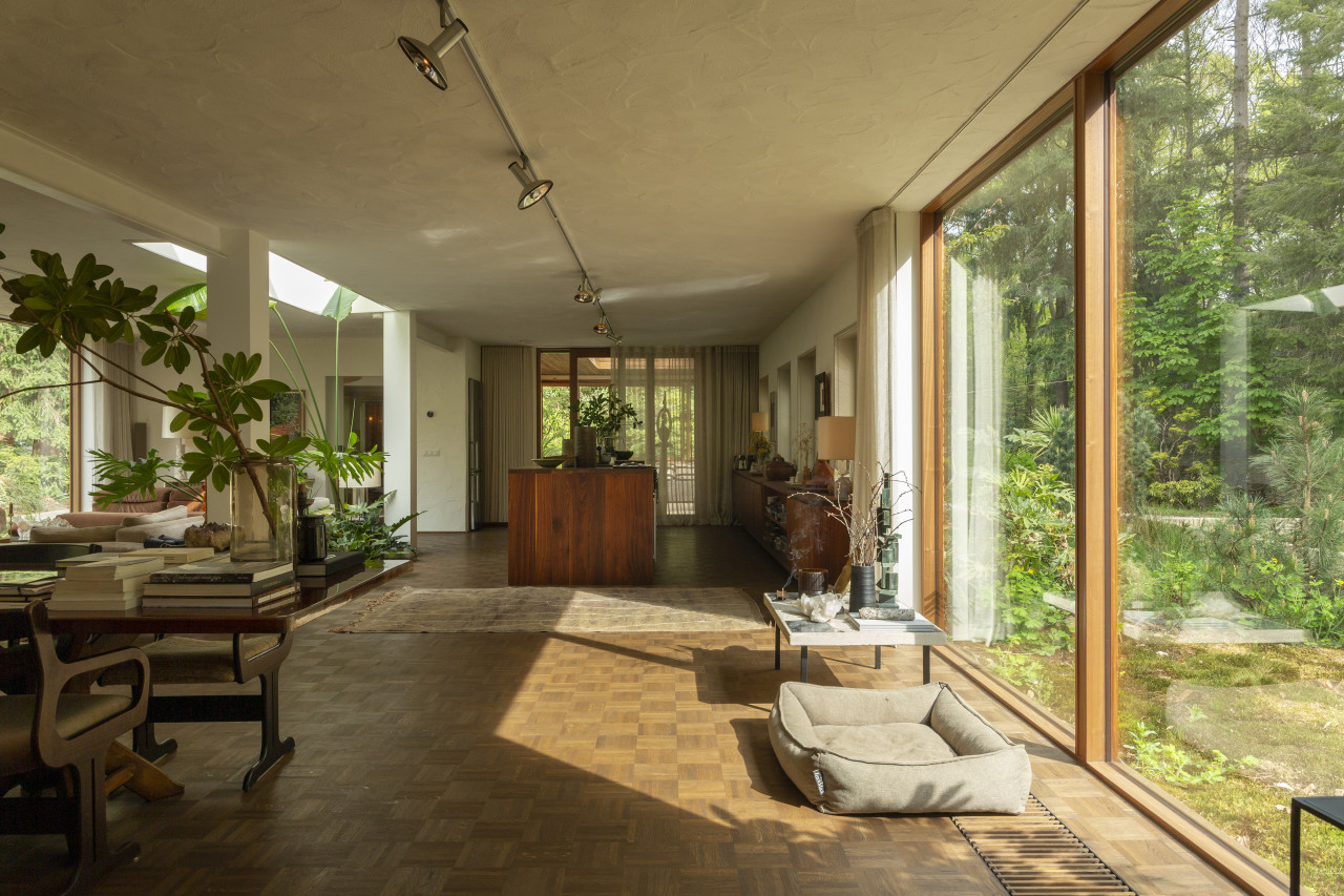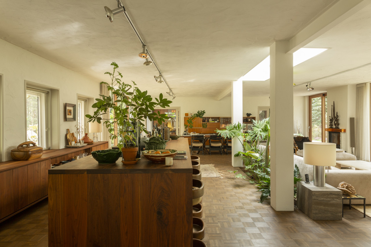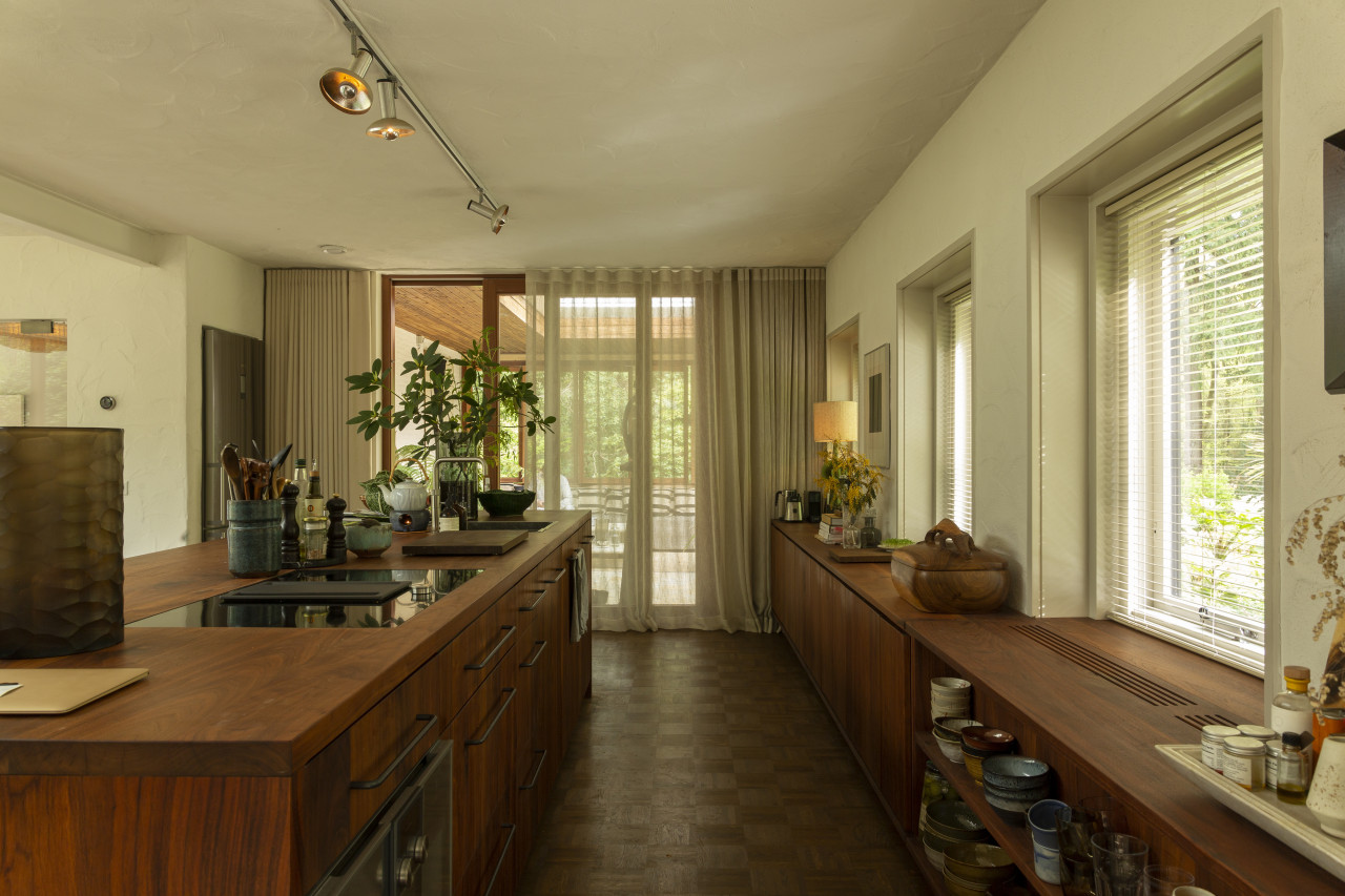 Entdecken Sie einen einzigartigen modernen Bungalow aus der Mitte des Jahrhunderts, umgeben von üppigem Grün, wo elegantes Design auf die beruhigende Präsenz der Natur trifft. Dieses weitläufige, lichtdurchflutete Haus verfügt über raumhohe Fenster, nahtlose Übergänge zwischen Innen- und Außenbereich und offen gestaltete Wohnräume, die sich perfekt für luxuriöse Unterhaltung und ruhige Entspannung eignen. Warme Holztöne, Steinverkleidungen und Designermöbel schaffen eine raffinierte Atmosphäre, während jedes Zimmer einen ruhigen Blick auf den Garten oder den Wald bietet. Die Küche des Küchenchefs ist mit hochwertigen Geräten und natürlichen Oberflächen ausgestattet, und die Bäder mit Spa-Charakter bieten einen beruhigenden Rückzugsort mit eleganten, organischen Akzenten. Mehrere Lounge- und Essbereiche bieten den perfekten Rahmen für Empfänge oder zum Entspannen, alles unterstrichen durch ausgewählte Kunst und Boutique-Details, die Wärme und Raffinesse in jeden Winkel bringen. Dieser Bungalow in ruhiger, privater Hanglage mit einfachem Zugang zur Stadt ist eine seltene Mischung aus Architektur und Natur und bietet gehobenes Wohnen vom Feinsten.