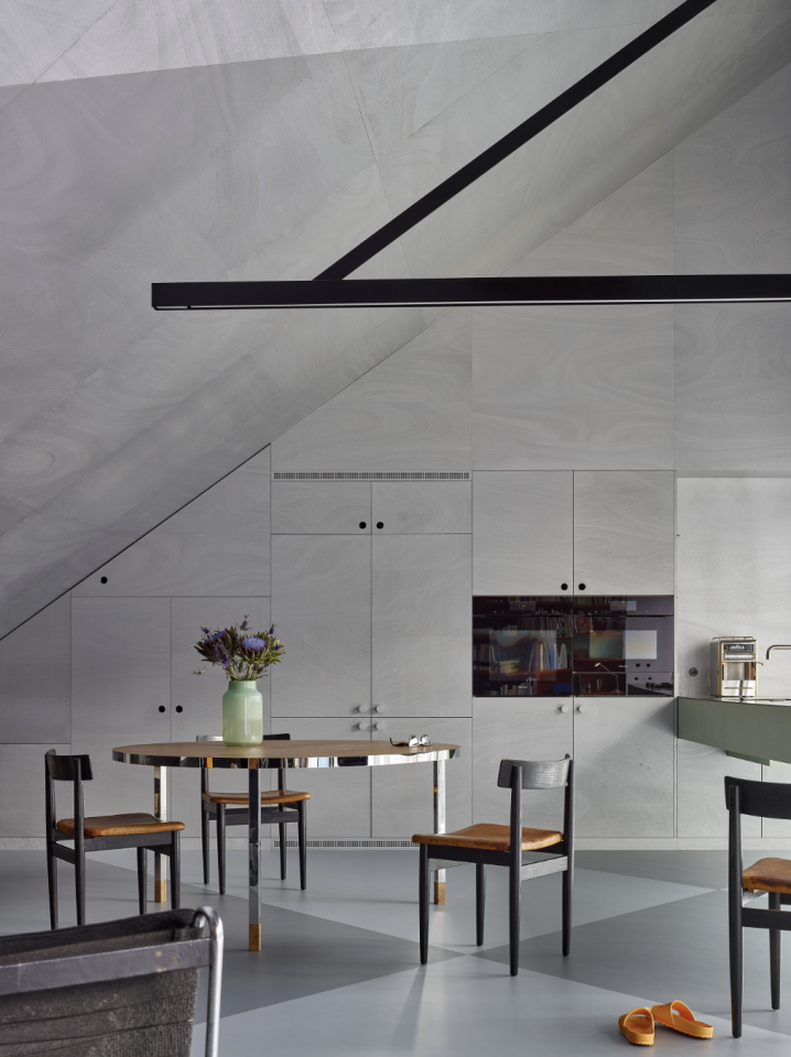 Neben dem 135 m² großen Loft steht im Erdgeschoss ein 67 m² großes Designstudio zur Verfügung, das ebenfalls gemietet werden kann.