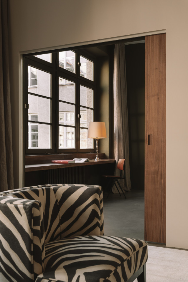 Im zweiten Stock des Altbaus von 1905 entfaltet sich das Penthouse-Loft 2.5.1 auf rund 70 Quadratmetern als ruhiger Rückzugsort in Berlin. Hohe Decken verleihen dem Raum eine besondere Großzügigkeit, während der offene Grundriss Wohnen, Essen und Kochen zu einer fließenden Raumstruktur verbindet. Die helle Küche fügt sich klar und minimalistisch in den Wohnbereich ein und bildet den Mittelpunkt der Wohnung.