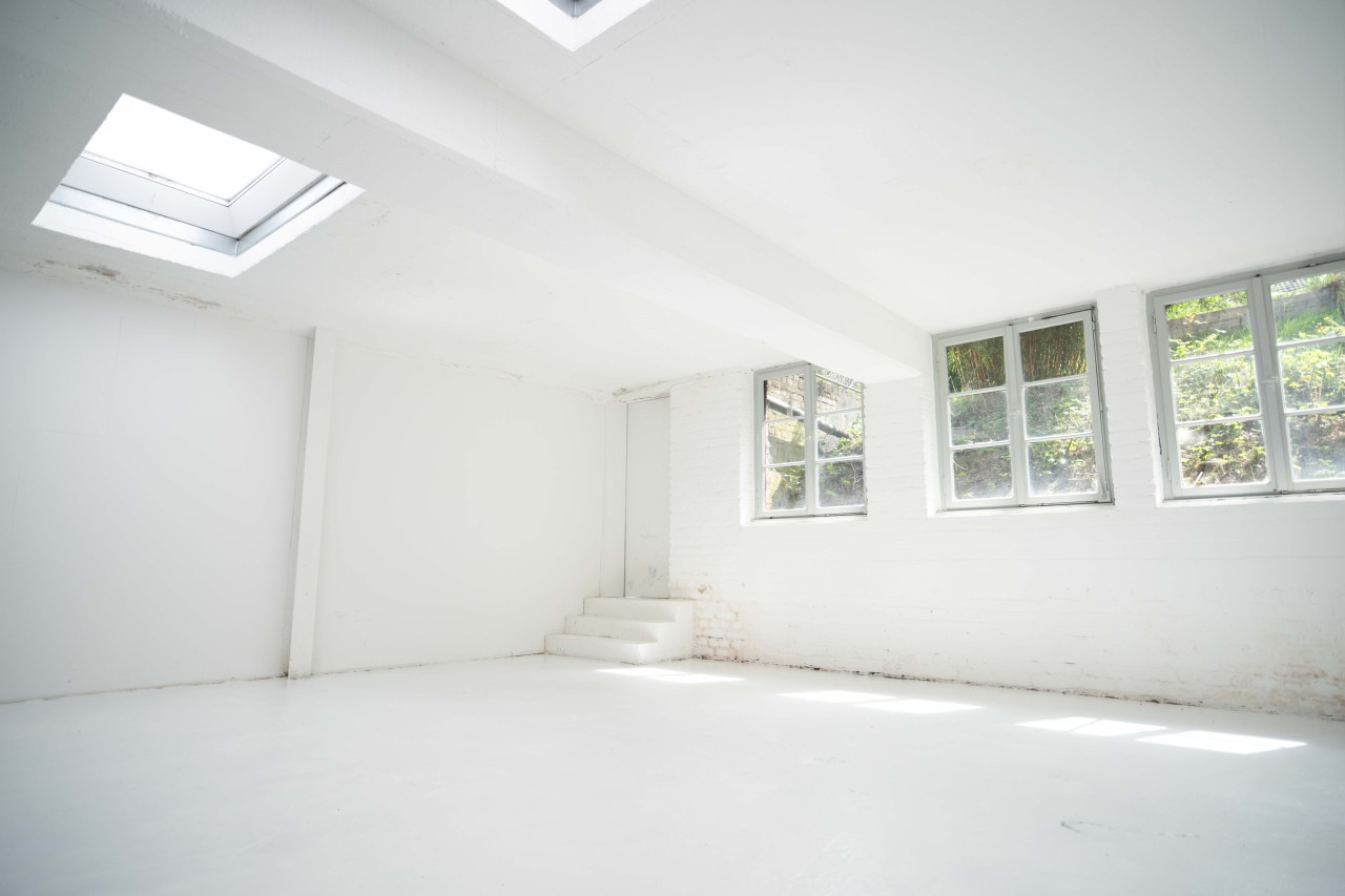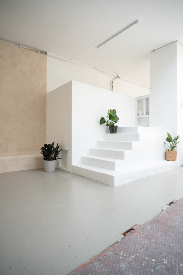 Unser Souterrain-Studio ist ein ganz in Weiß gehaltener Studioraum mit ca. 200qm mit direktem Sonnenlicht und gedämpften Deckenleuchten, die Ihnen genügend Sonnenlicht bieten, um Fotos und Videos mit natürlichem Licht zu erstellen. Das Studio ist auch mit einer Küche und einem Studiogarten ausgestattet, den Sie während Ihrer Drehtage, Workshops usw. für das Mittagessen nutzen können.
