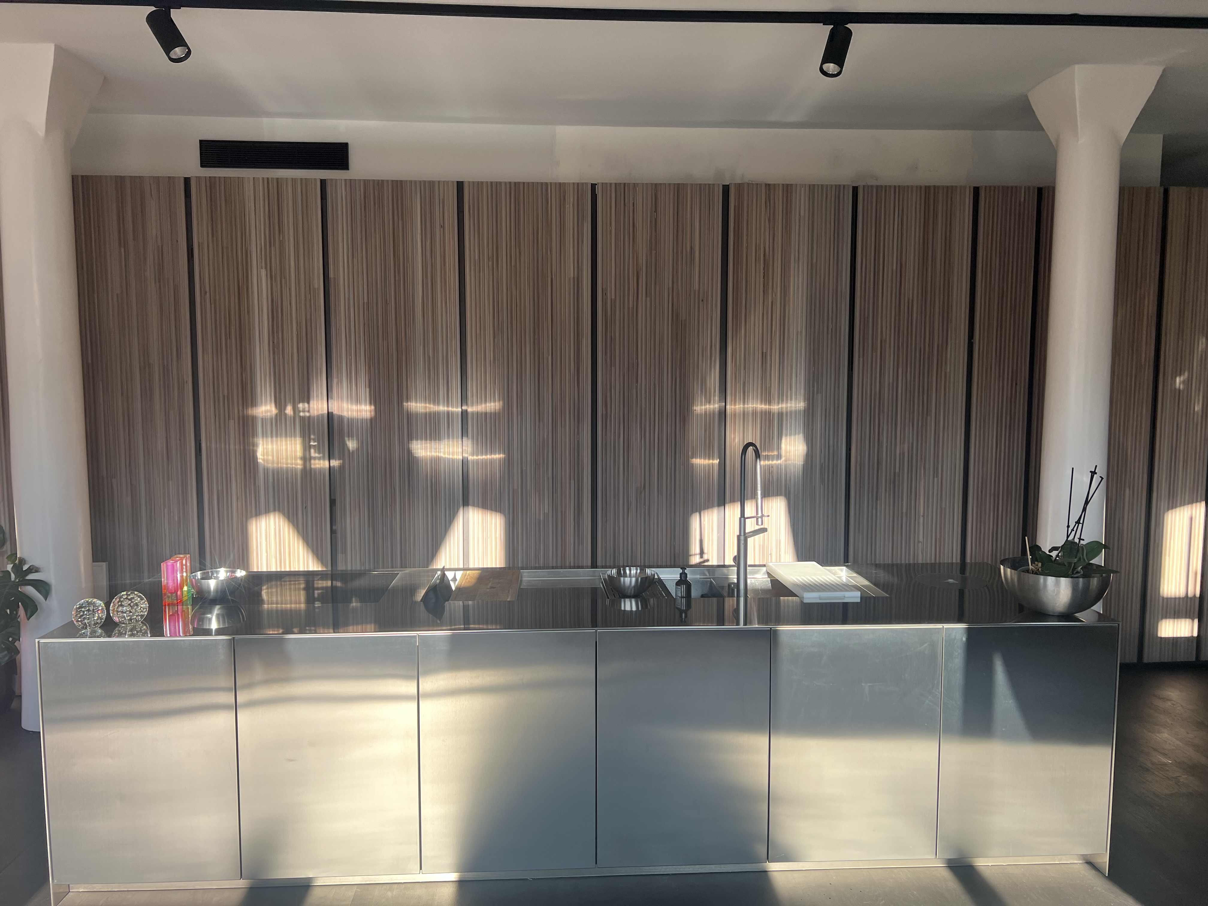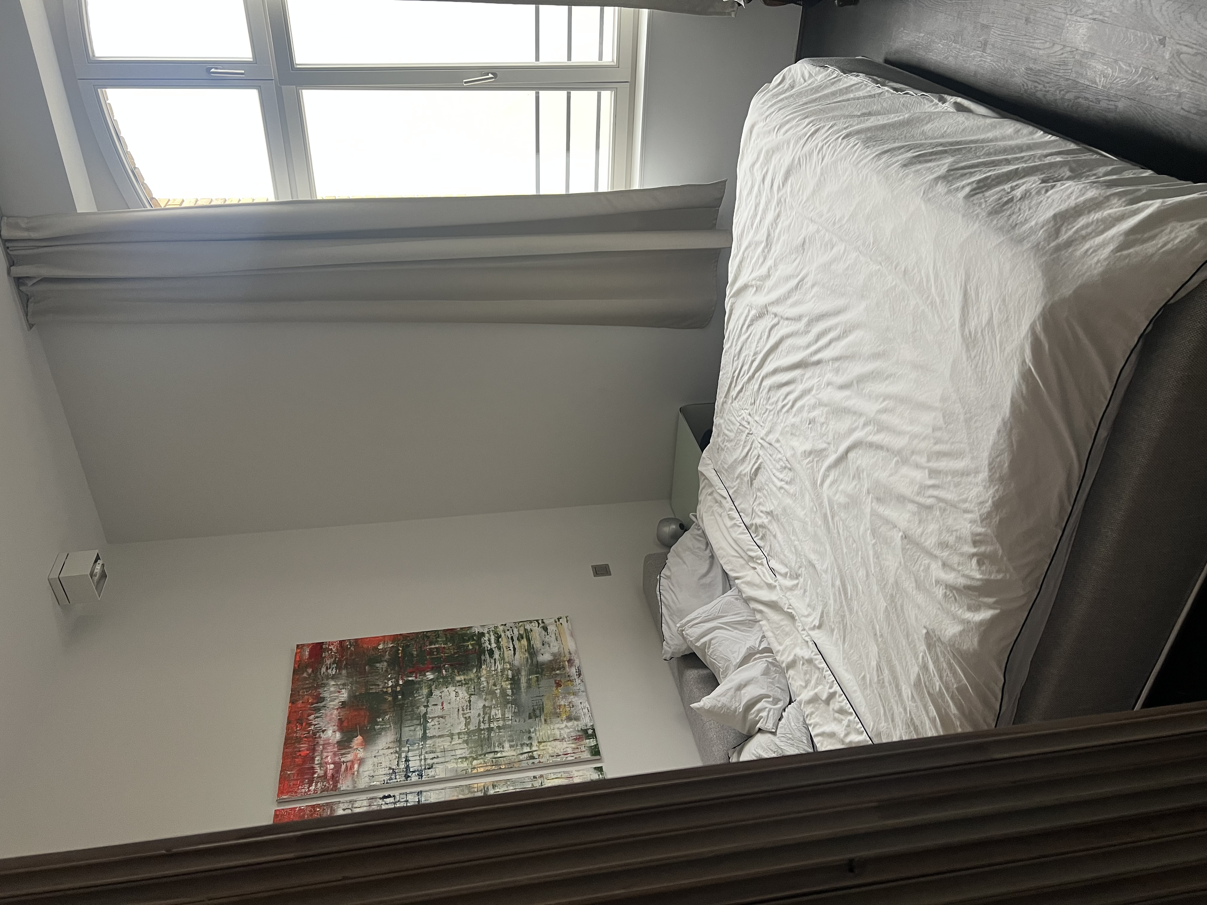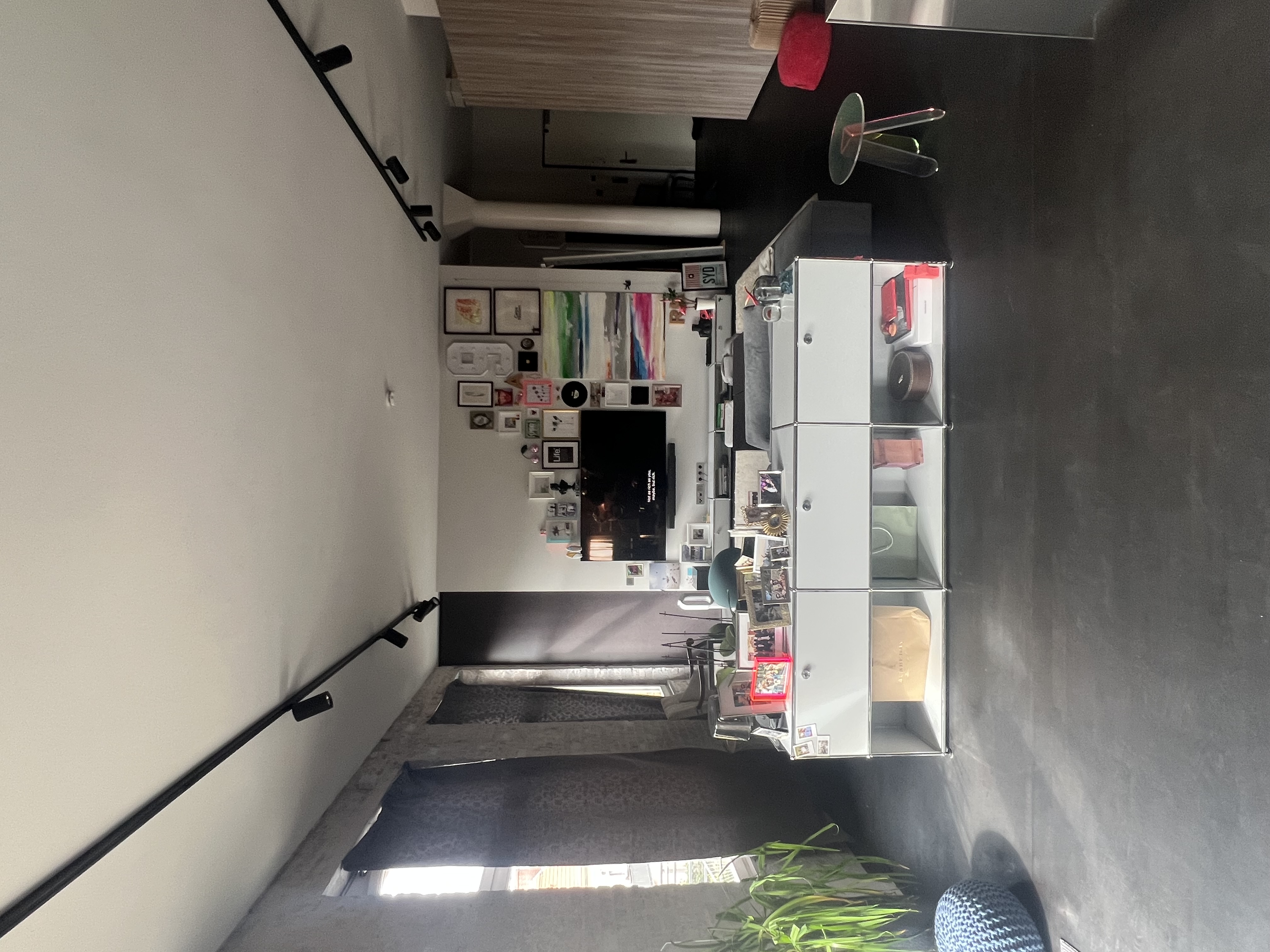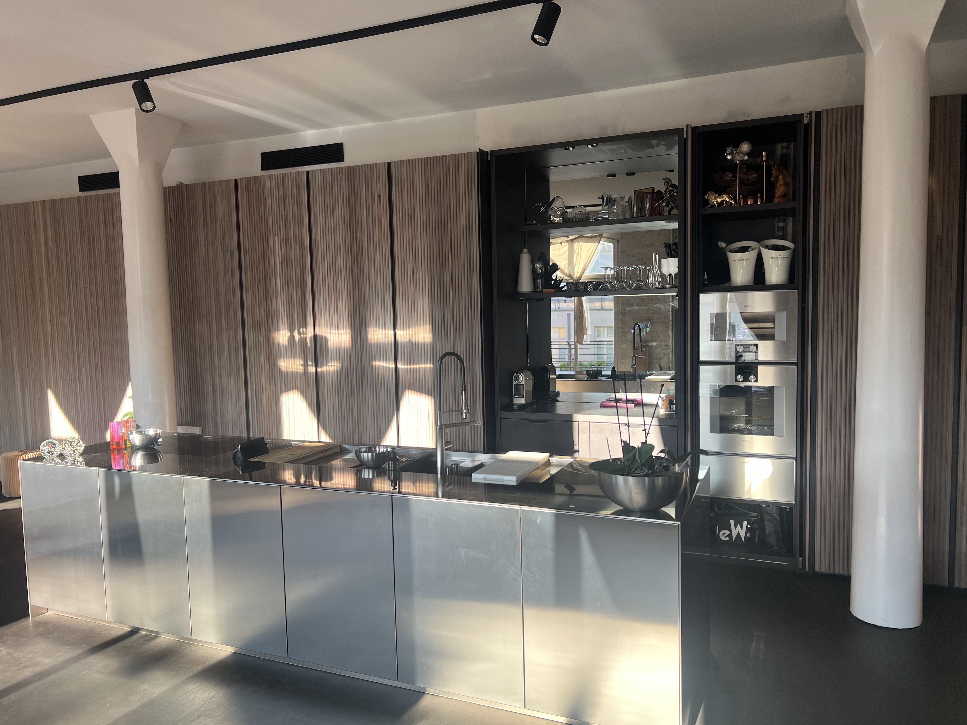 Entdecken Sie die Essenz des Stadtlebens in dieser modernen Loft-Wohnung, die von natürlichem Sonnenlicht durchflutet und von lebhaften Stadtpanoramen umgeben ist. Die Wohnung verfügt über eine Reihe gut ausgestatteter Räume, darunter eine Küche mit Holzschränken und einem auffälligen Metalltresen, der durch ein buntes Graffiti-Wandgemälde aufgewertet wird - perfekt für alle, die eine Mischung aus eklektischem Essen und modernem Design schätzen. Die Wohnbereiche sind offen und luftig, mit großen Fenstern, die das geschäftige Stadtbild einrahmen und eine friedliche und doch lebendige Wohnumgebung schaffen.
