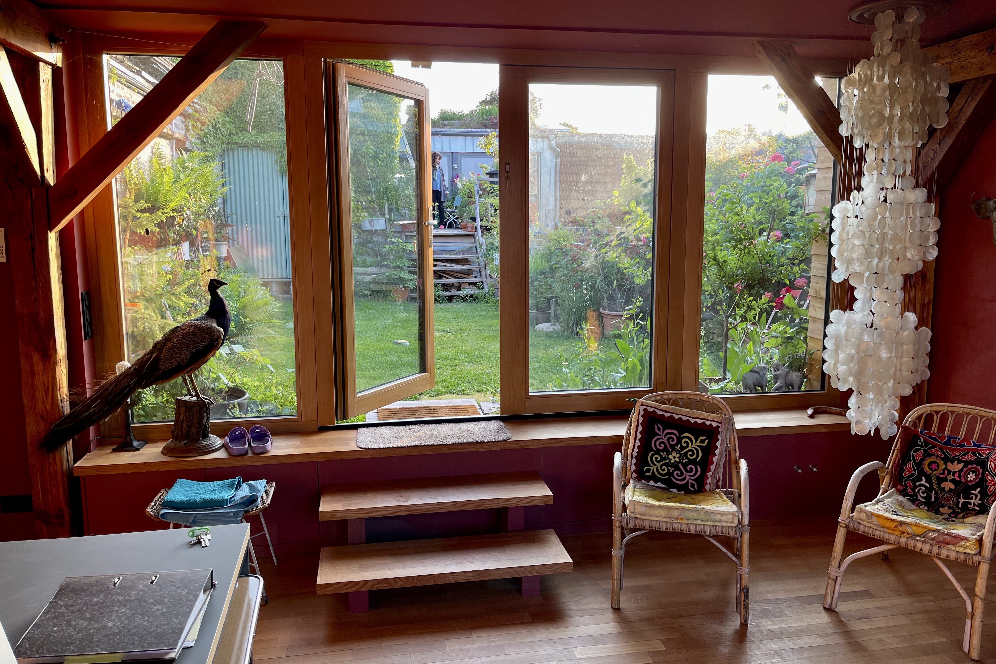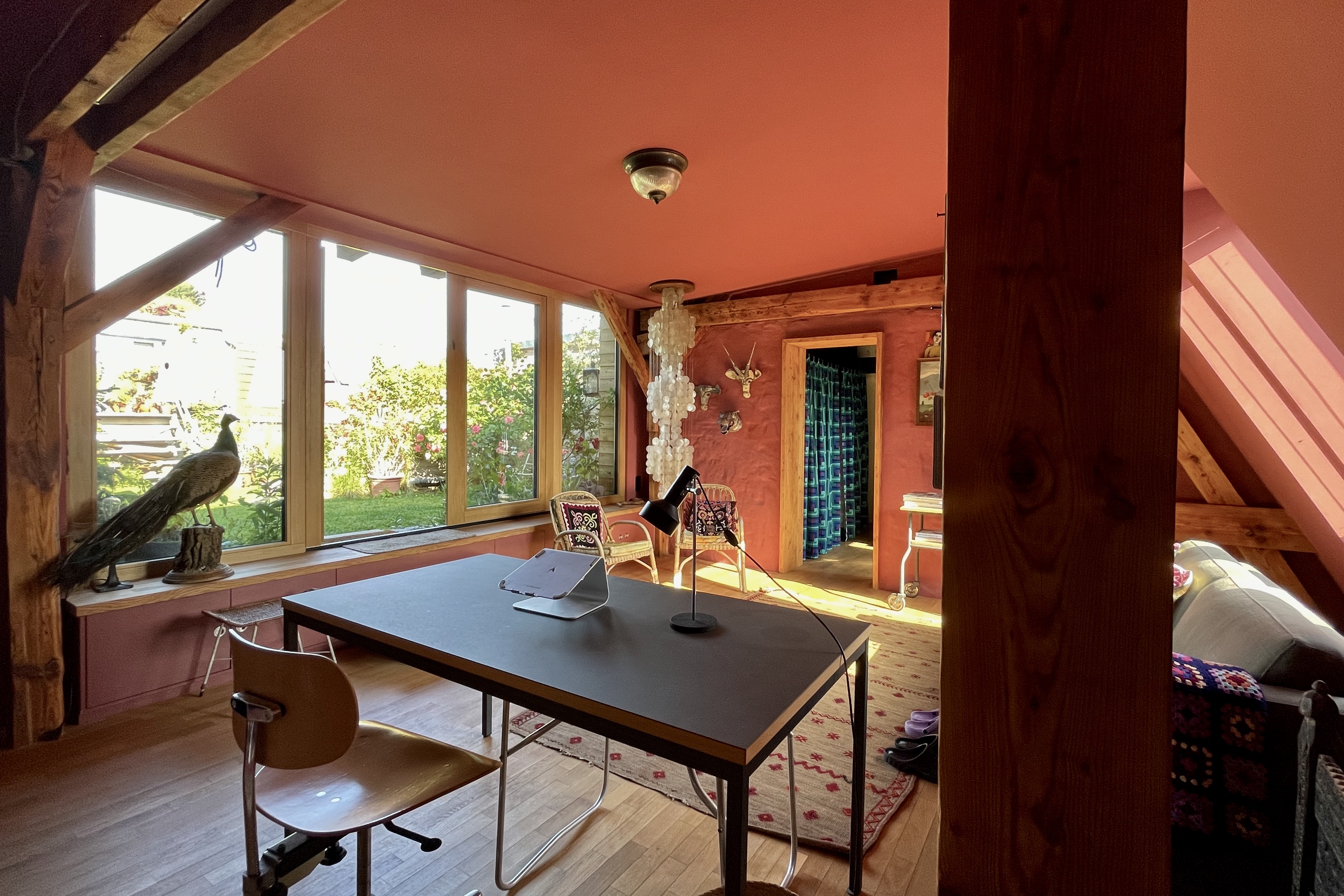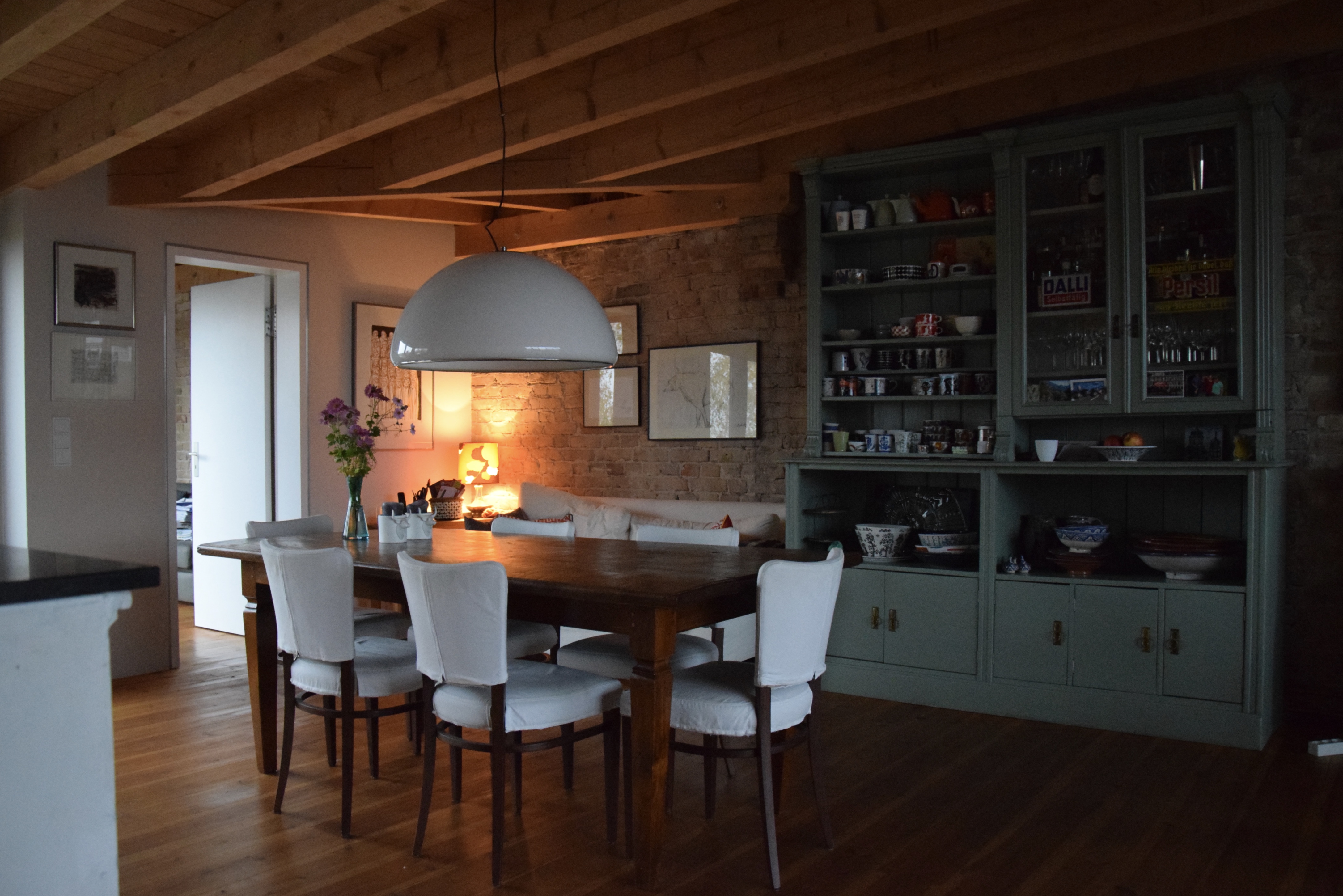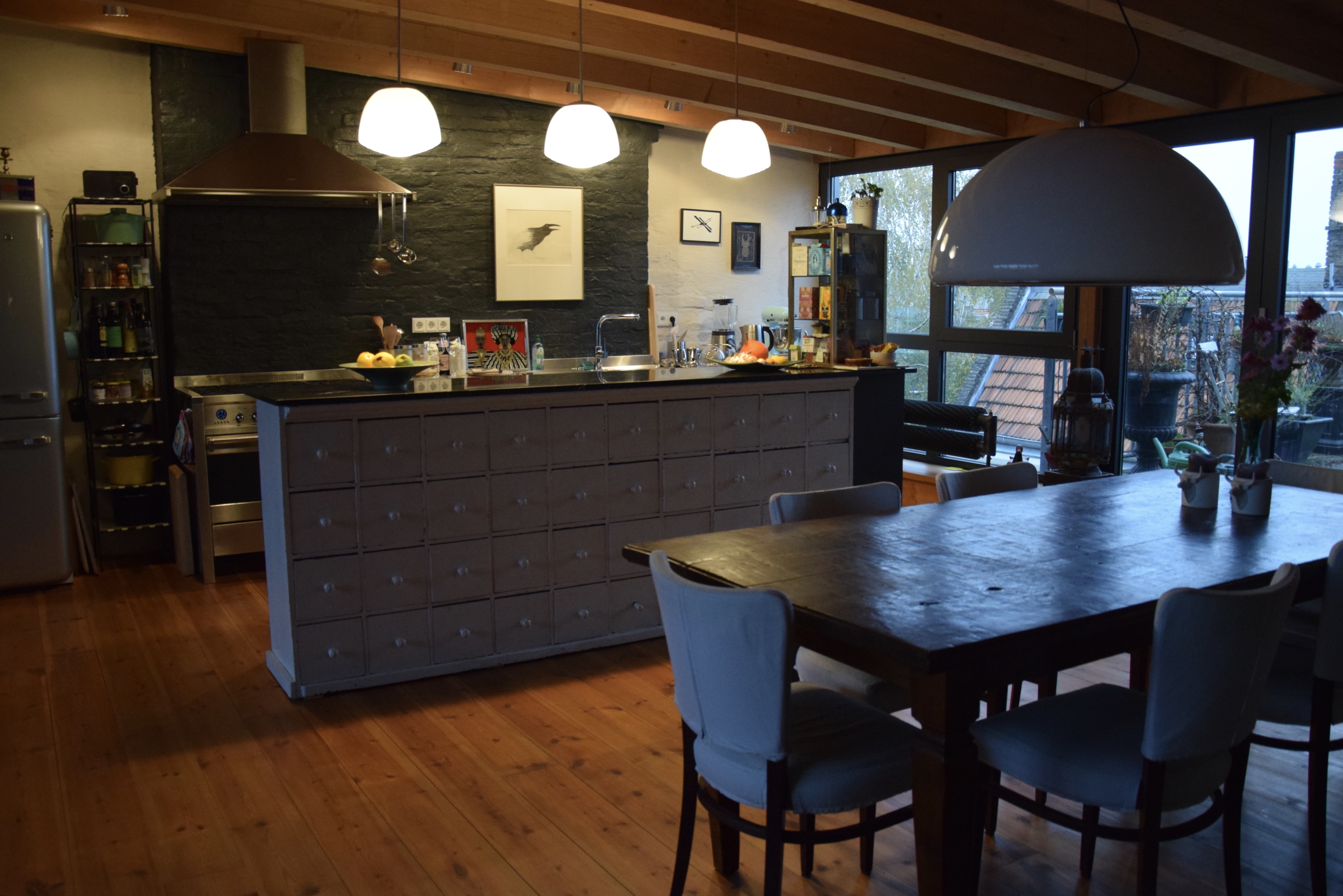 Erleben Sie den Inbegriff des urbanen Lebens in diesem exquisiten Loft, das den Reiz einer rustikalen, modernen Einrichtung mit der pulsierenden Energie des Stadtlebens verbindet. Dieses Loft verfügt über ein stilvolles Wohnzimmer mit blauen Möbeln, eklektischem Dekor und großen Fenstern, die den Raum mit natürlichem Licht durchfluten und eine warme und einladende Atmosphäre schaffen. Der Raum ist vielseitig und eignet sich mit seinen gemütlichen Sesseln und dem Kuhfellteppich sowohl zum Entspannen als auch zur Unterhaltung, die durch einen markanten Kamin und ein gut bestücktes Bücherregal unterstrichen wird.