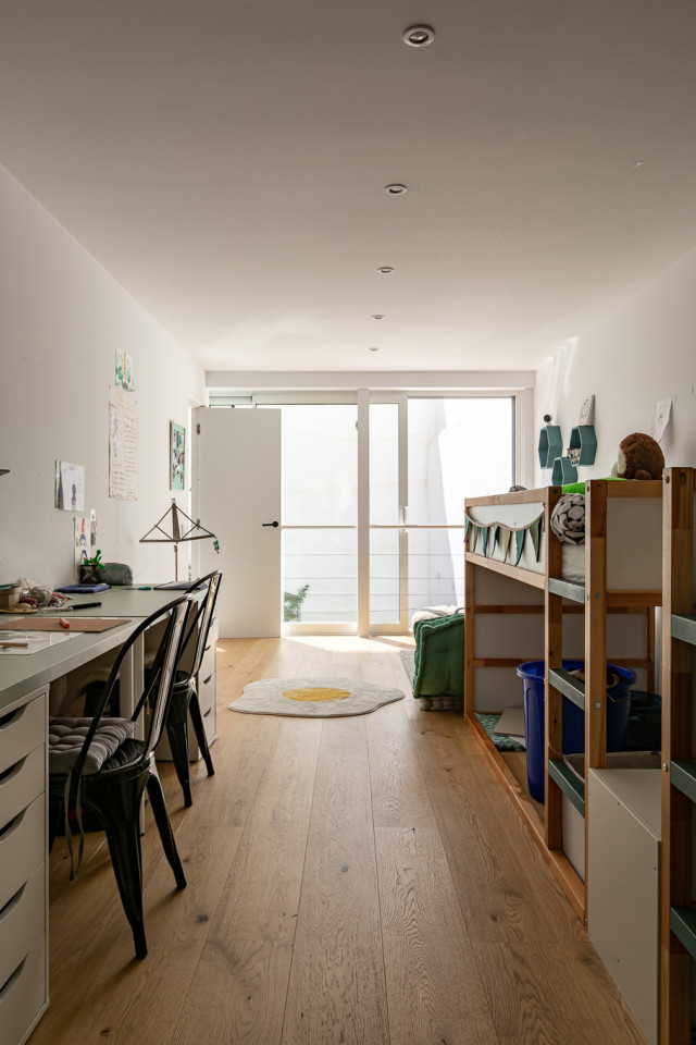 El loft incluye varios rincones, habitaciones infantiles, un elegante despacho con vistas al jardín y un lujoso cuarto de baño con bañera exenta y ducha en espiga. Su paleta limpia de madera, blanco y vegetación garantiza un estilo sin esfuerzo para cualquier dirección creativa.