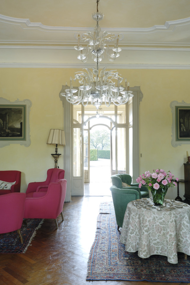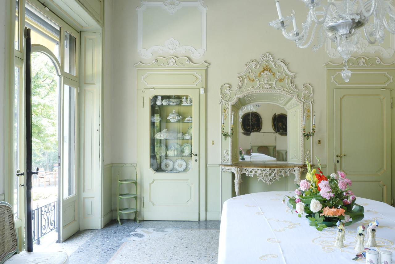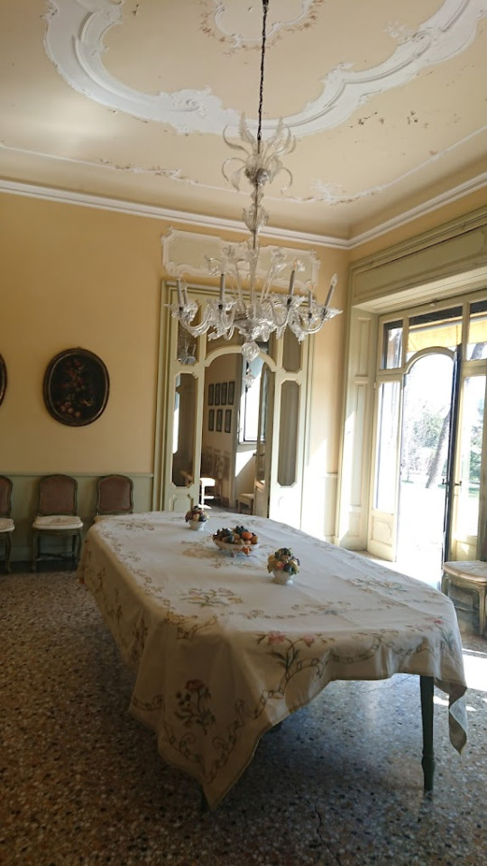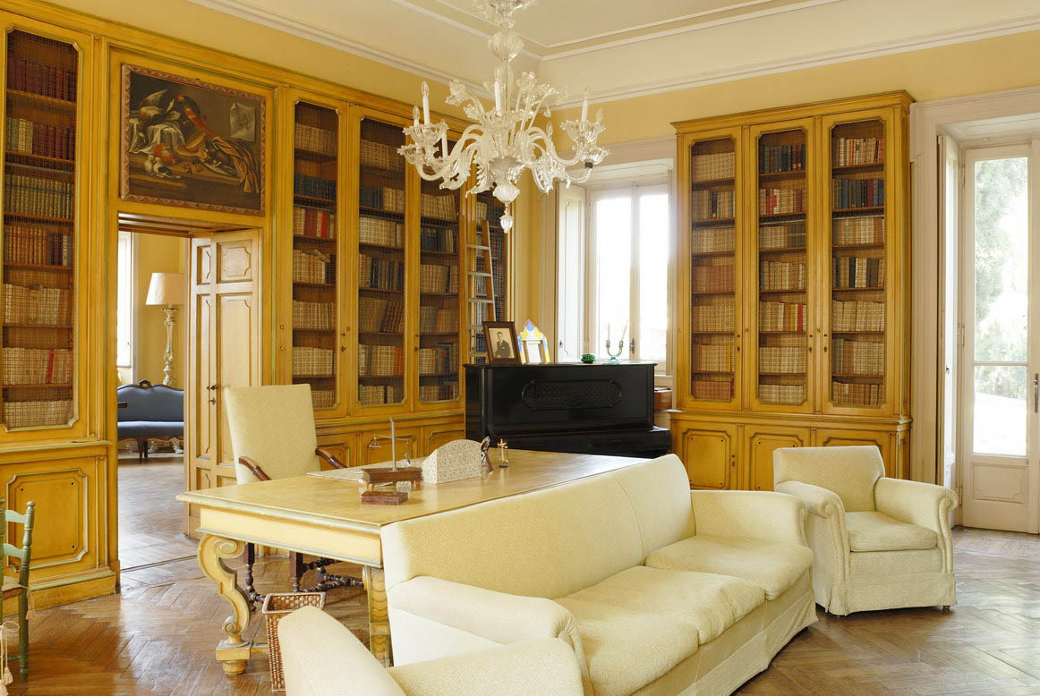 Al entrar en la villa, se le da la bienvenida a un mundo de interiores luminosos y patrimonio artístico. Los altos techos están adornados con detalles originales de estuco y frescos pintados a mano, creando un ambiente majestuoso. Los amplios salones y las íntimas salas de estar están llenos de luz natural que fluye a través de altas ventanas arqueadas, resaltando los suelos de madera pulida, los muebles antiguos y los espejos dorados. Las sillas tapizadas en terciopelo y las majestuosas arañas de cristal añaden sofisticación y calidez, capturando la esencia del lujo italiano.