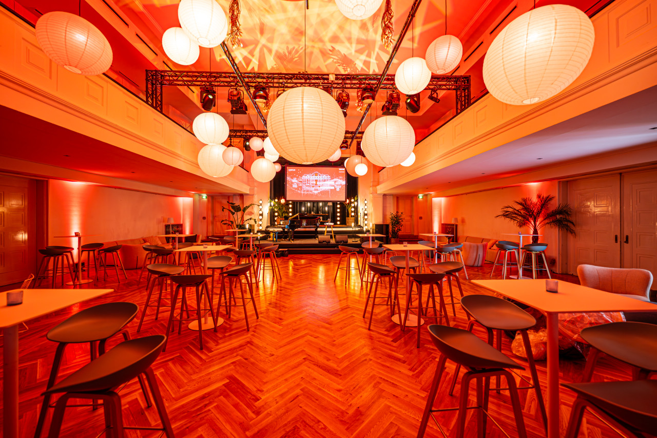 Quale salone preferisce? Galleria ovest? Galleria est? Grande? Piccolo? La venerabile Gesellschaftshaus è una location per eventi grande o dieci più piccole, proprio come vi serve. La location può ospitare fino a 1.500 persone. Punto forte: la sala da ballo al secondo piano. Un po' più piccola al piano terra: La Sala Bianca con la sua galleria circostante o la Sala Rothenbaum con terrazza sul Rothenbaumchaussee. Sontuosi: i foyer su quattro piani. Perché non perdersi qui e vedere cosa succede?