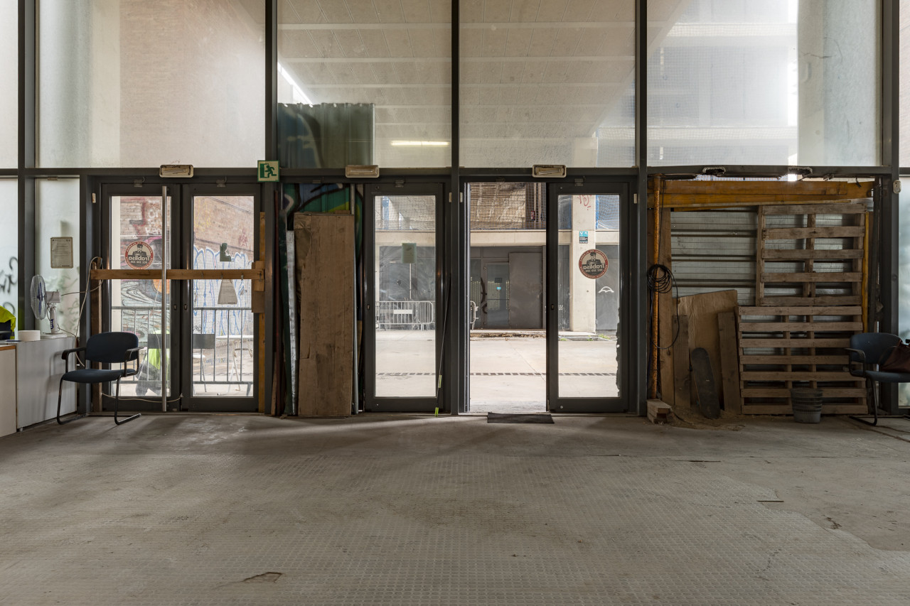 Questo spazio industriale abbandonato presenta uno sfondo grezzo e d'atmosfera, definito da pilastri in cemento a vista, soffitti non rifiniti e ampie pareti finestrate inondate di luce naturale. La pianta aperta si estende su un vasto interno a scala di magazzino, offrendo una tela ininterrotta ideale per grandi produzioni, riprese editoriali, video musicali, campagne di moda e lavori cinematografici concettuali. Le superfici degradate - vernice scrostata, pavimenti scrostati e vetri graffitati - creano un'estetica urbana e strutturata che sembra autentica e cinematografica. La luce filtra dalle alte finestre industriali, proiettando ombre drammatiche e illuminando lo spazio con una luce diffusa e grintosa che ne esalta il carattere di fabbrica abbandonata.