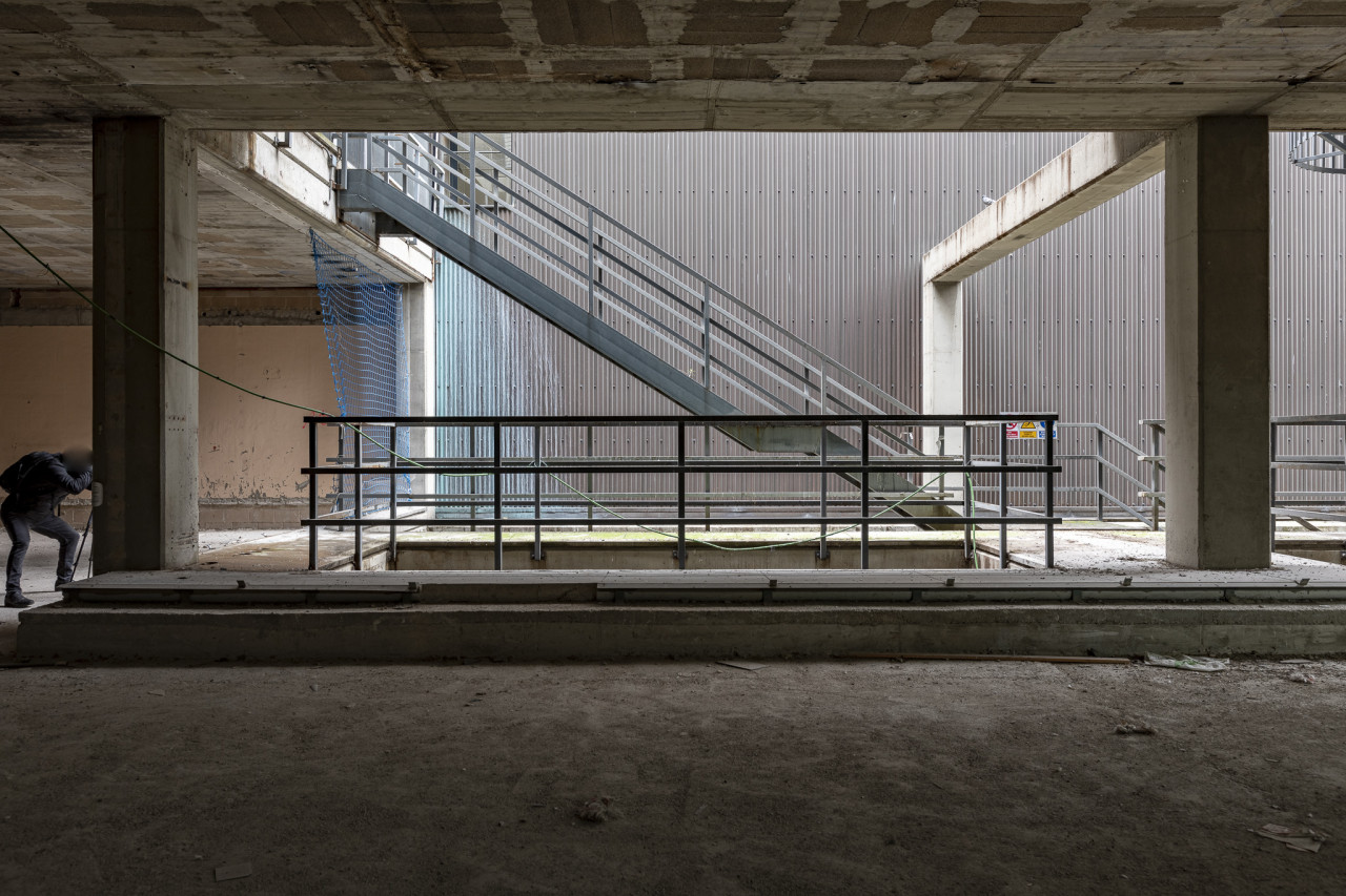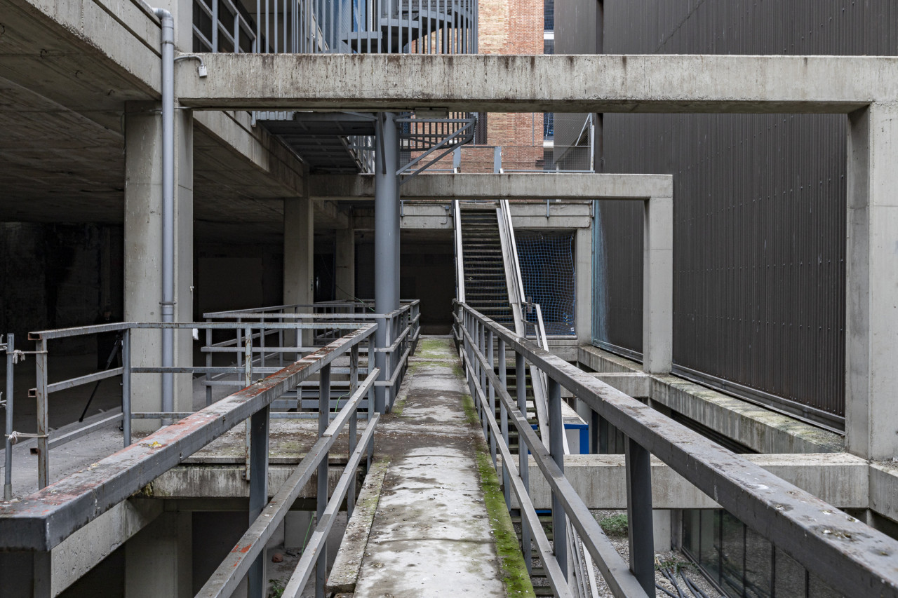 I livelli multipli, i mezzanini e le passerelle strutturali introducono linee architettoniche di grande impatto e aggiungono profondità per composizioni dinamiche. Le scale in acciaio, le piattaforme sopraelevate e l'intelaiatura in cemento conferiscono un aspetto geometrico perfetto per una messa in scena creativa. L'esterno circostante, caratterizzato da corridoi industriali, ringhiere metalliche e un'imponente ciminiera in mattoni, aumenta l'attrattiva del luogo e fornisce ulteriori ambienti di ripresa con un tono decisamente urbano e post-industriale. Questo spazio è abbastanza versatile per editoriali di moda, progetti d'arte contemporanea o qualsiasi produzione che cerchi un'ambientazione audace, grezza e autenticamente abbandonata.