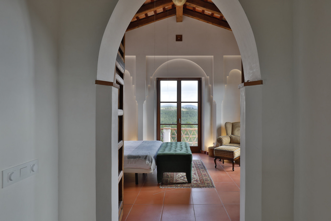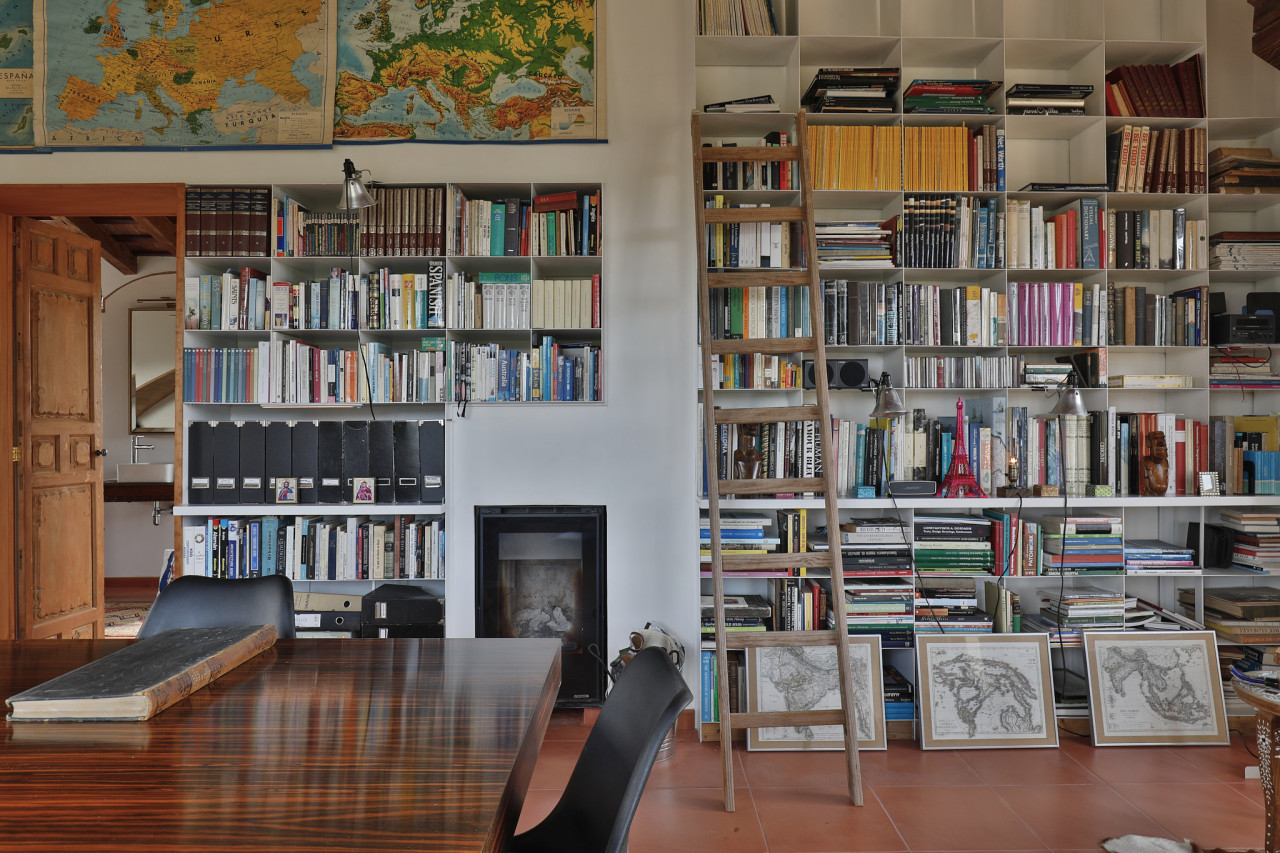 L'interno continua l'estetica calda e artigianale con pavimenti in terracotta, travi in legno a vista, porte in legno intagliato e una suggestiva biblioteca piena di libri, ideale per ritratti editoriali, campagne di brand o scene di narrazione d'atmosfera. Un angolo lettura inondato di sole e incorniciato da finestre panoramiche si affaccia sulle colline circostanti, aggiungendo uno spazio sereno e intimo per i servizi fotografici.