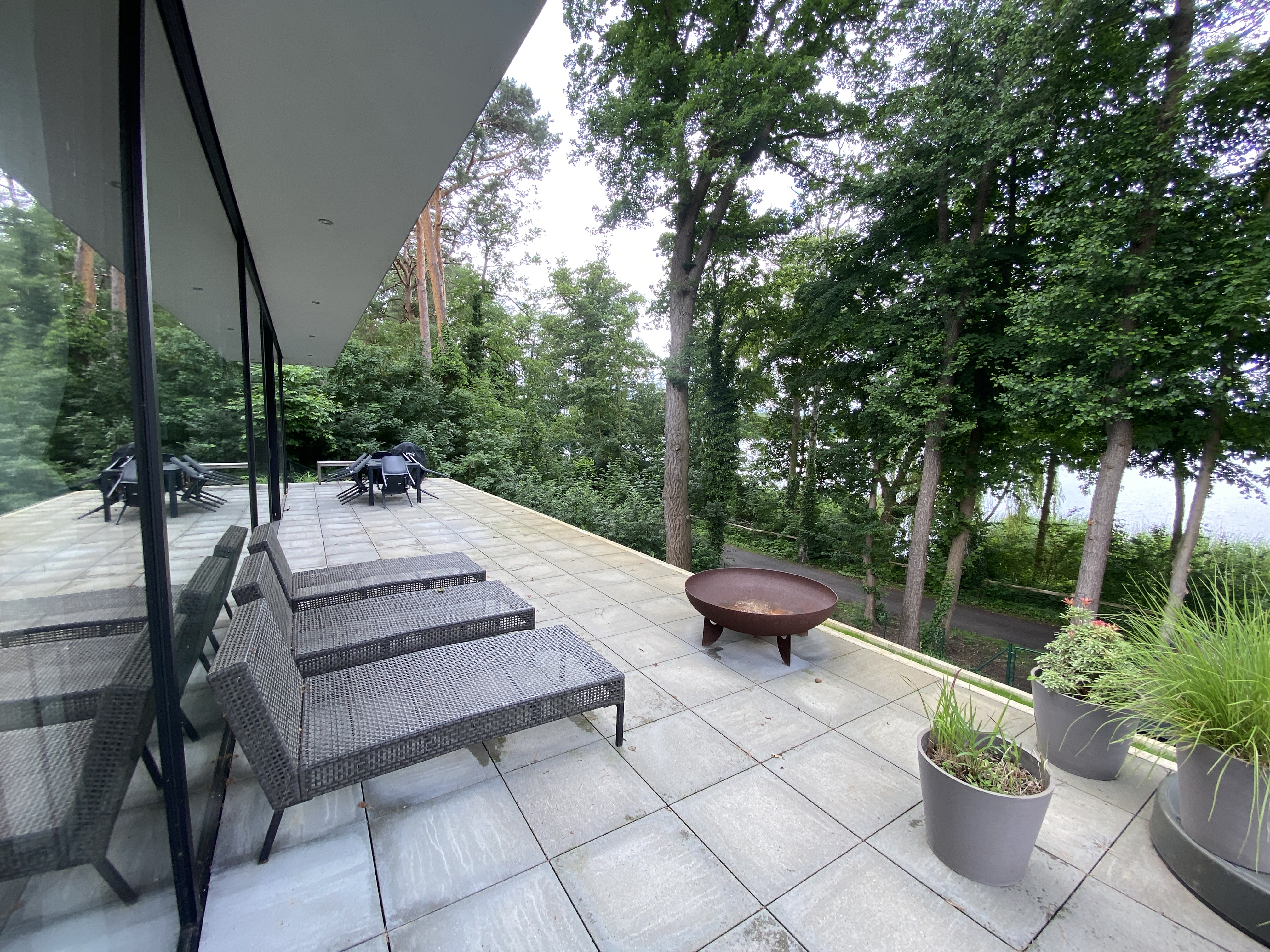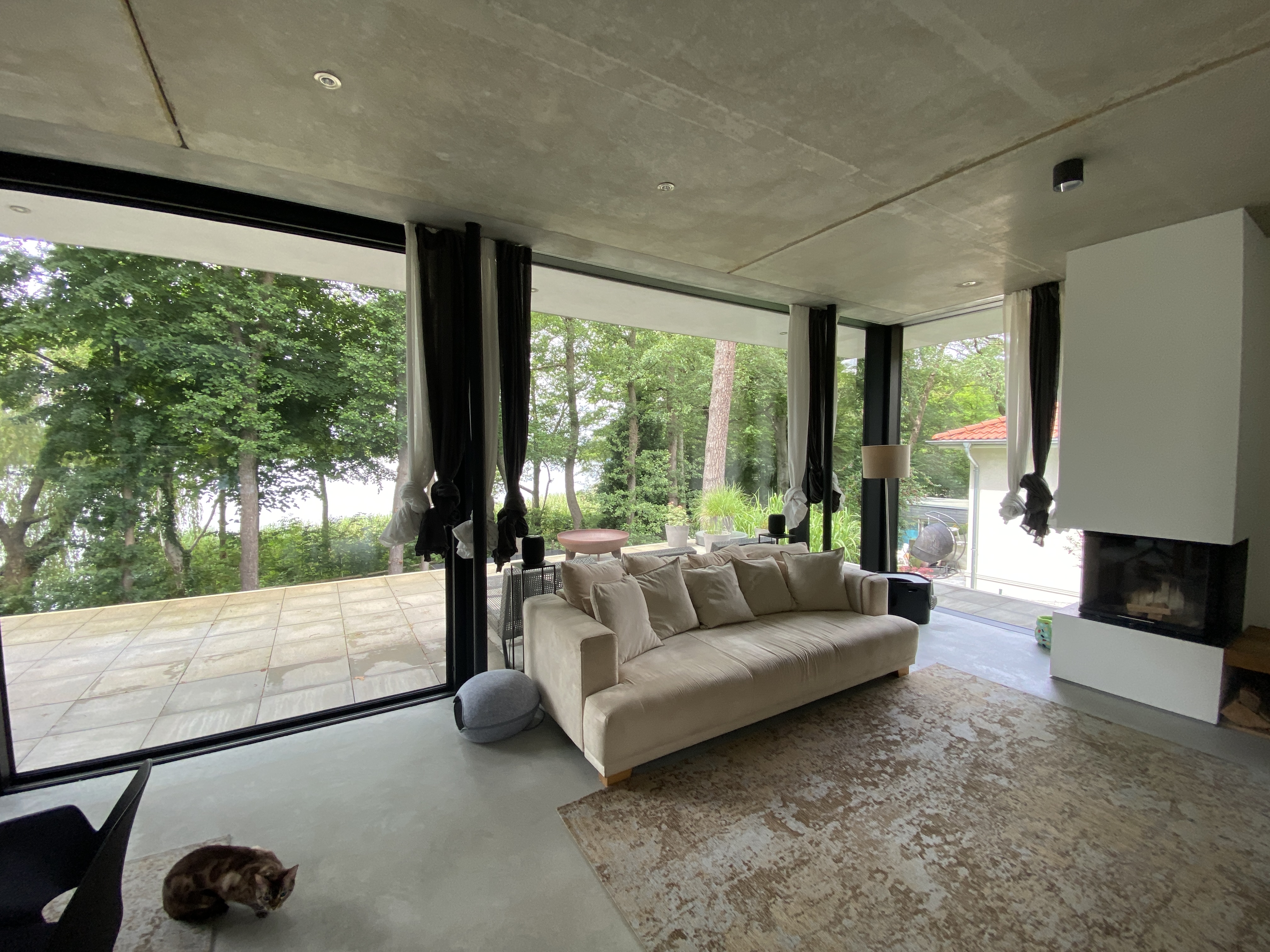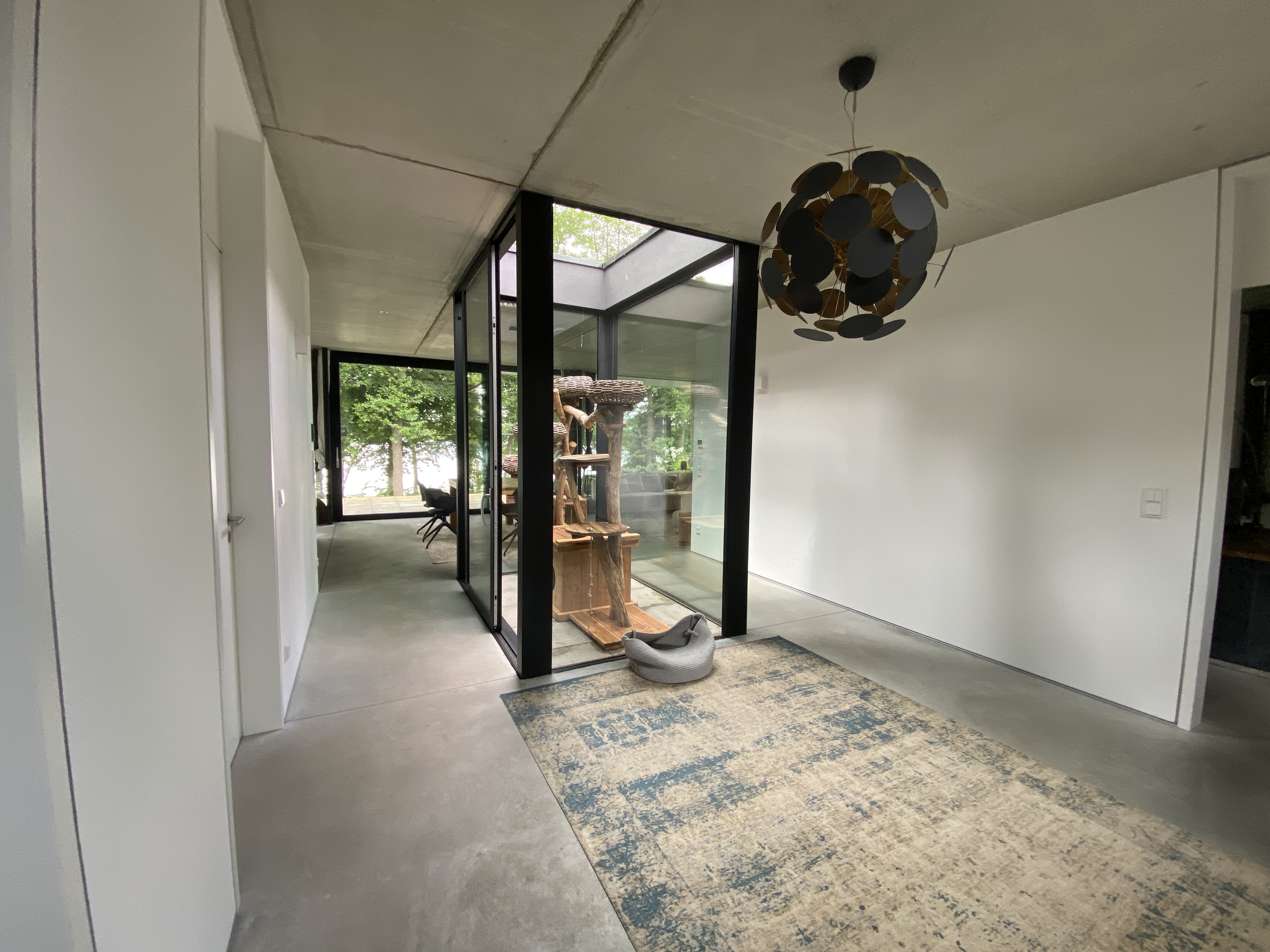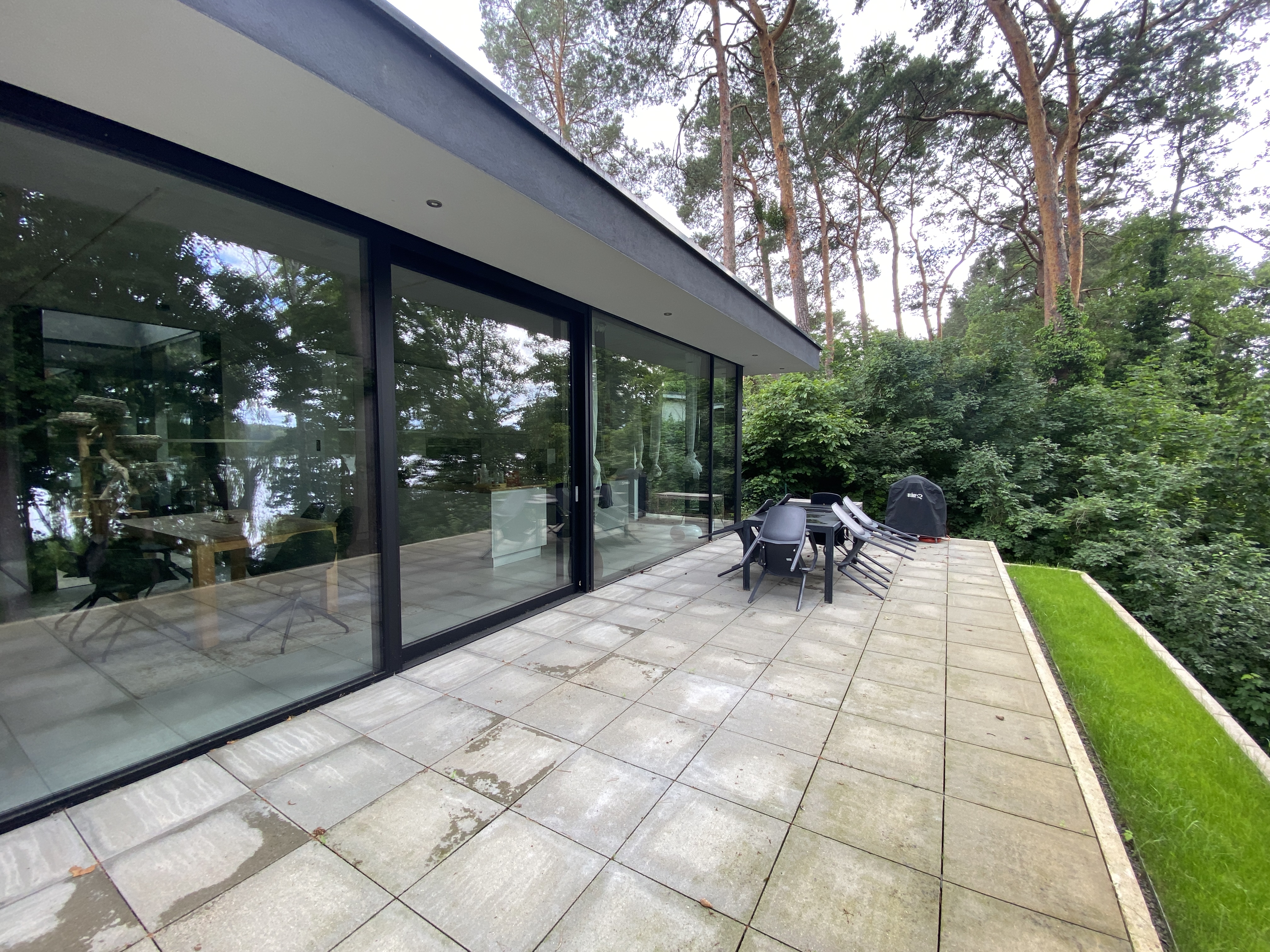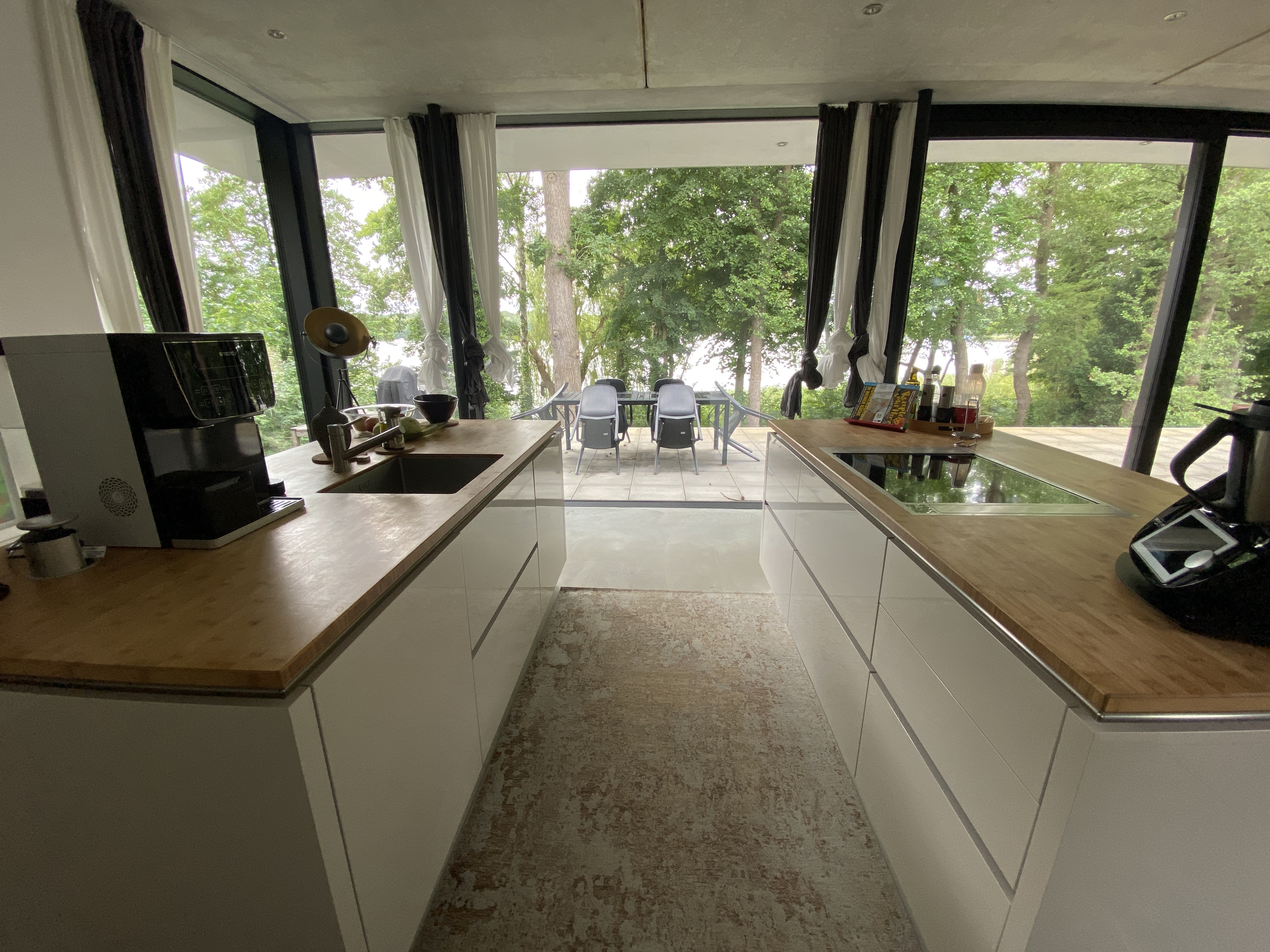 Immersa in un bosco sereno e costeggiata da un lago tranquillo, questa splendida casa moderna offre un perfetto connubio tra bellezza naturale ed eleganza architettonica. La casa è caratterizzata da ampie pareti vetrate che offrono una vista senza ostacoli sul verde lussureggiante e sul tramonto che si staglia sul lago, creando un ambiente di pace e tranquillità. Questa casa è stata progettata con un approccio moderno e minimalista, integrando finiture di alto livello come il legno lucido, eleganti elettrodomestici da cucina e spazi ampi e ariosi che si fondono perfettamente con l'ambiente esterno.