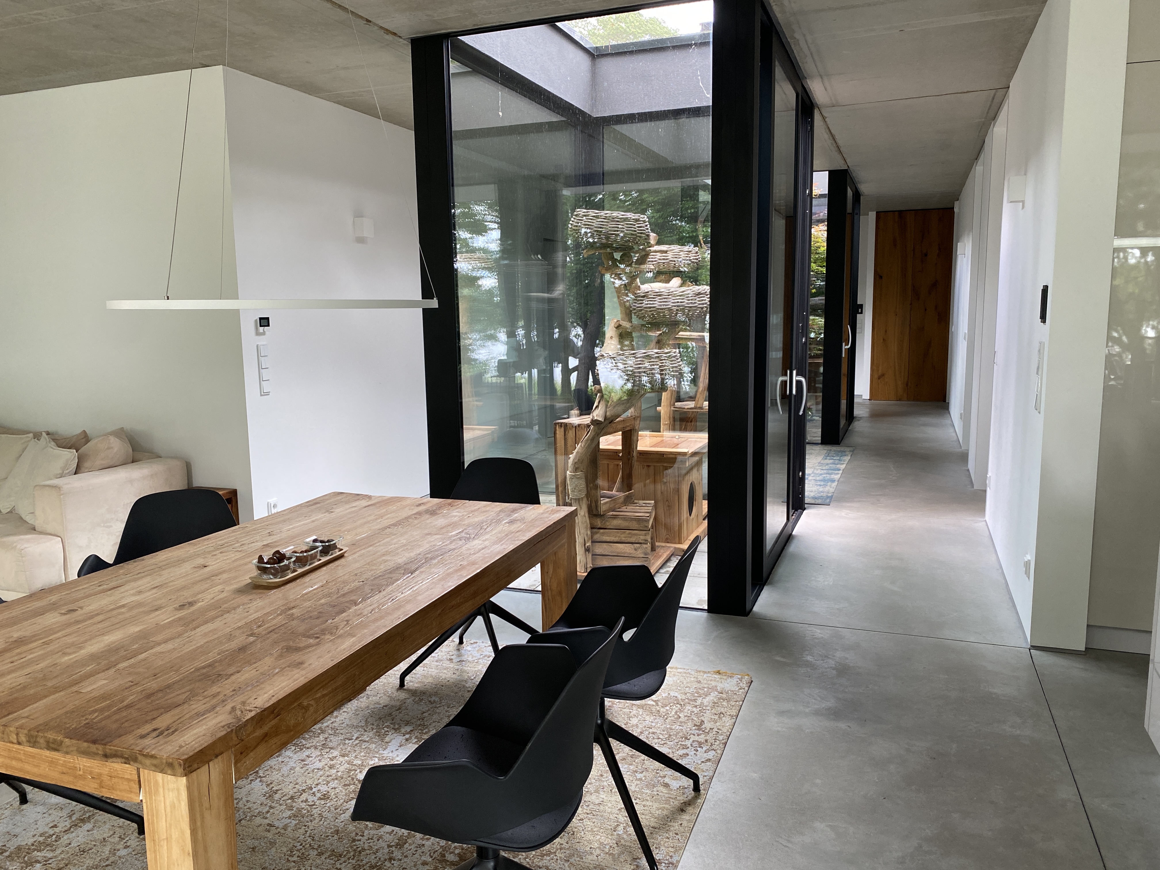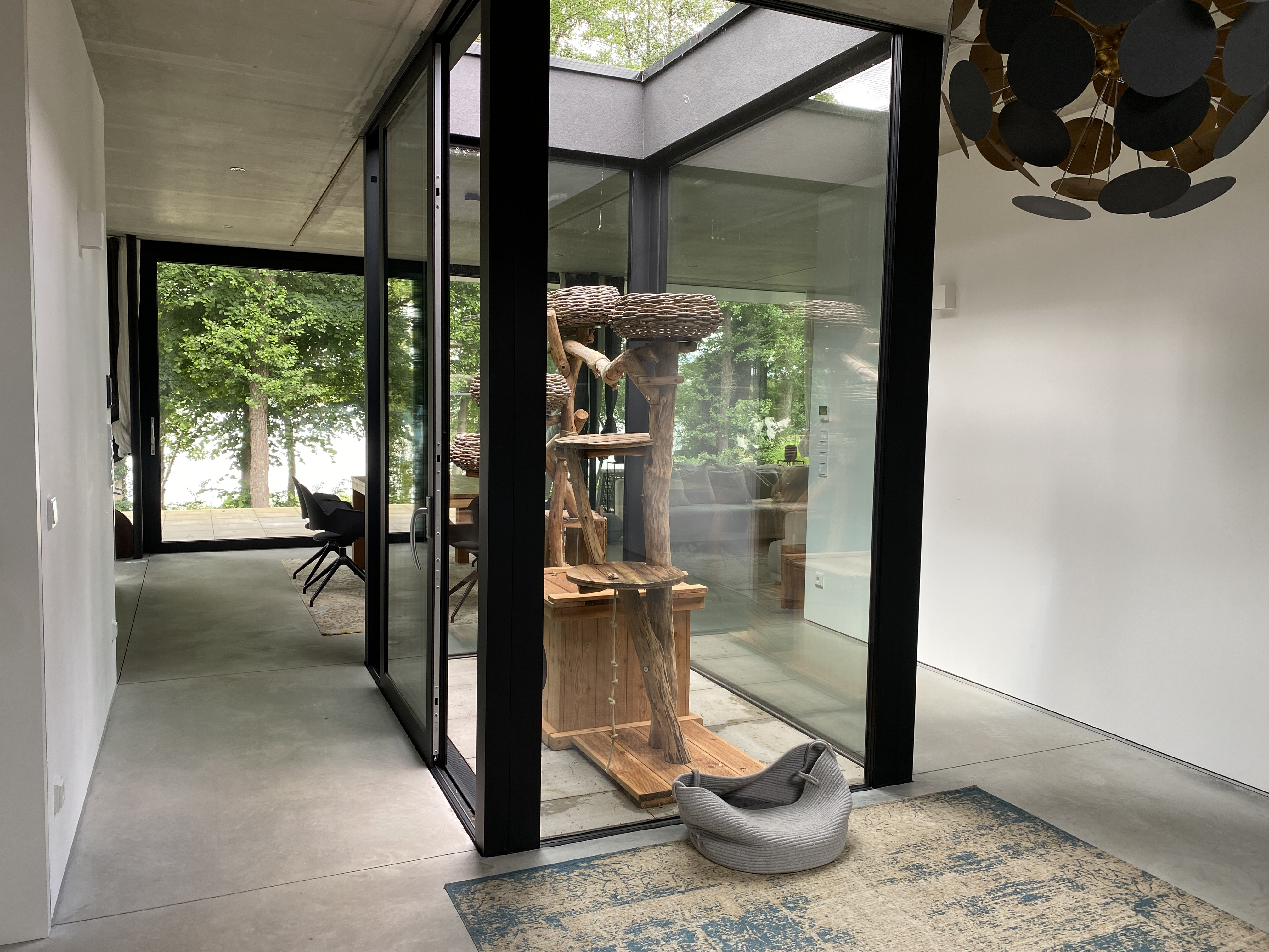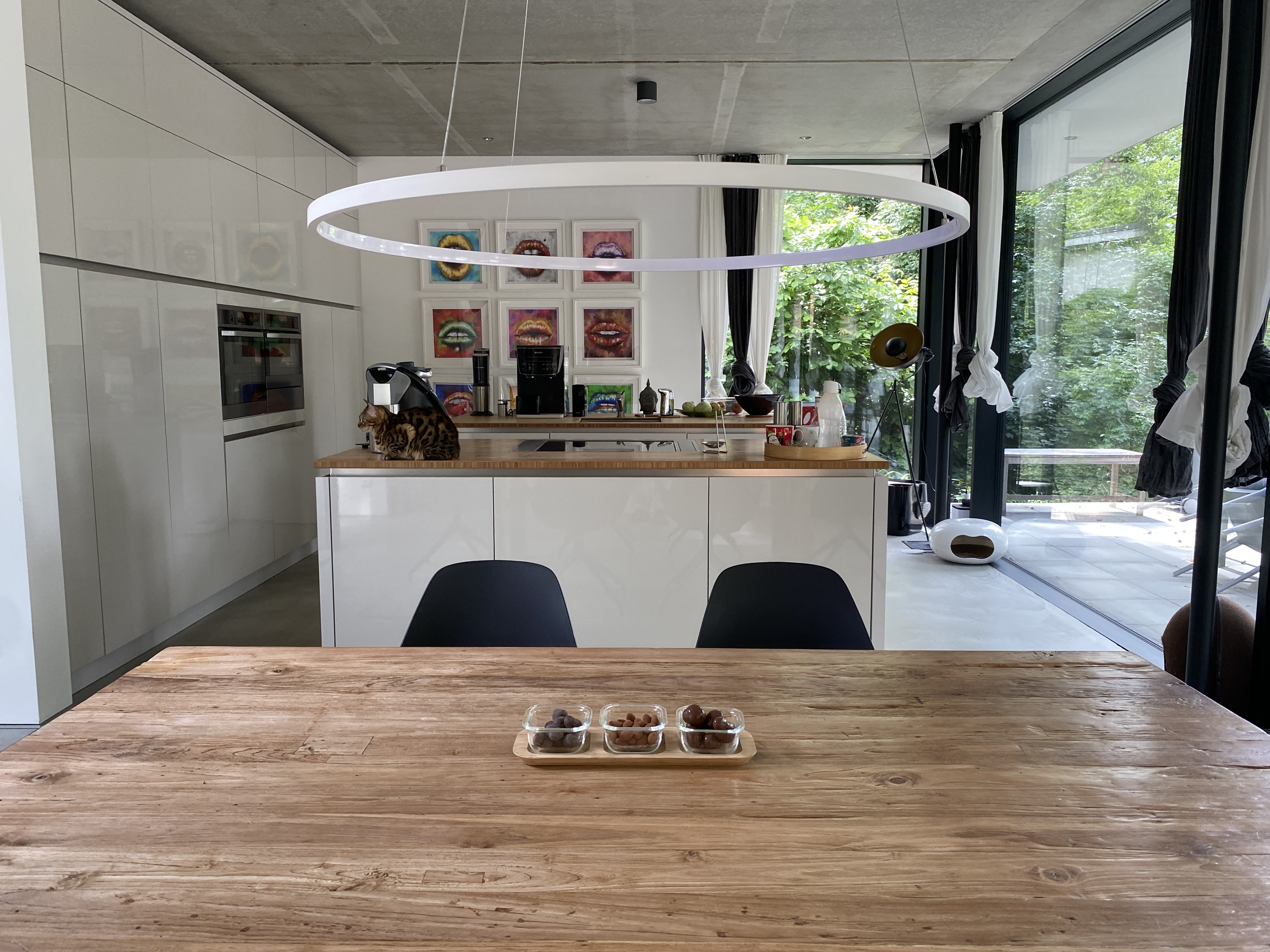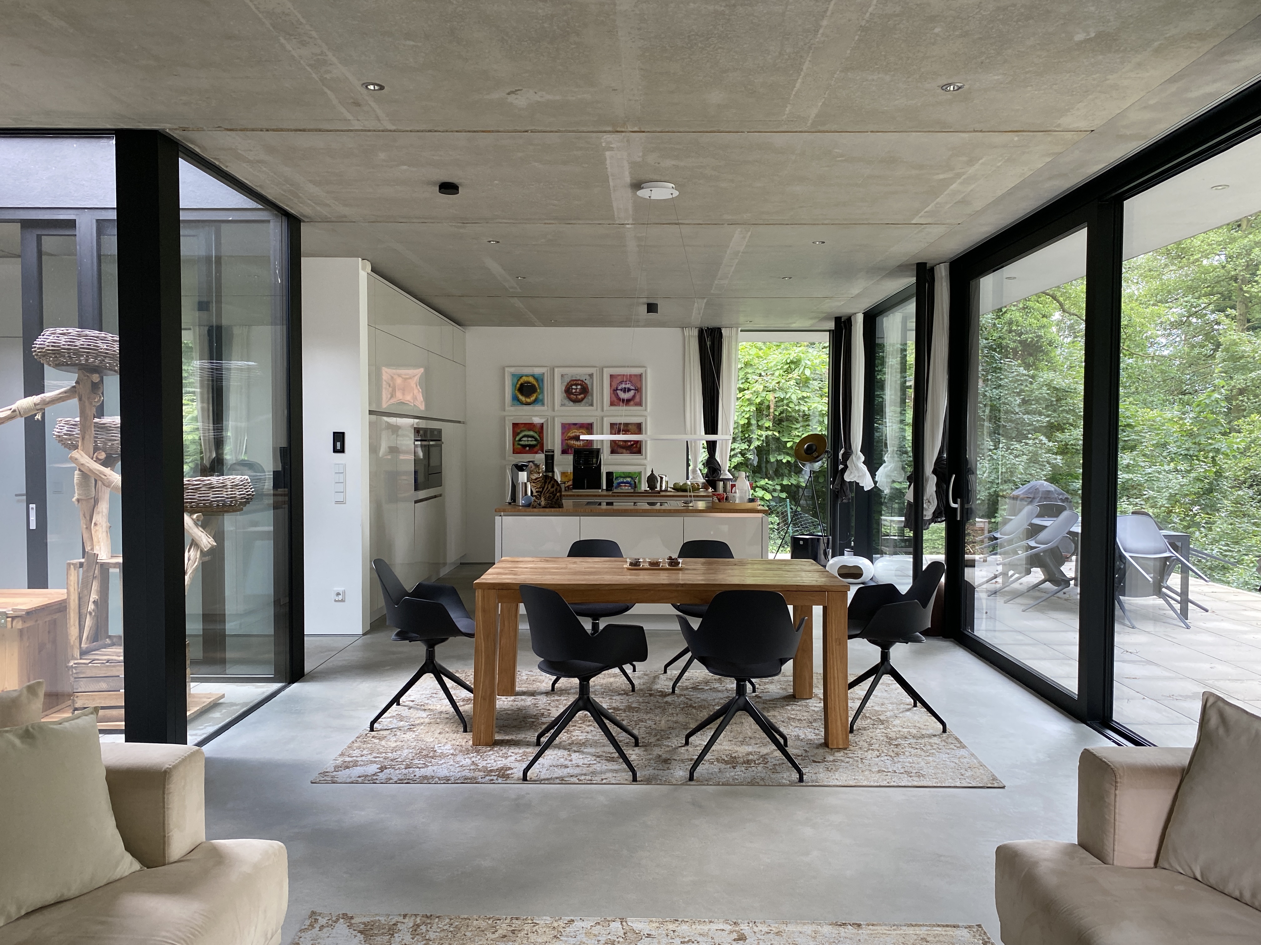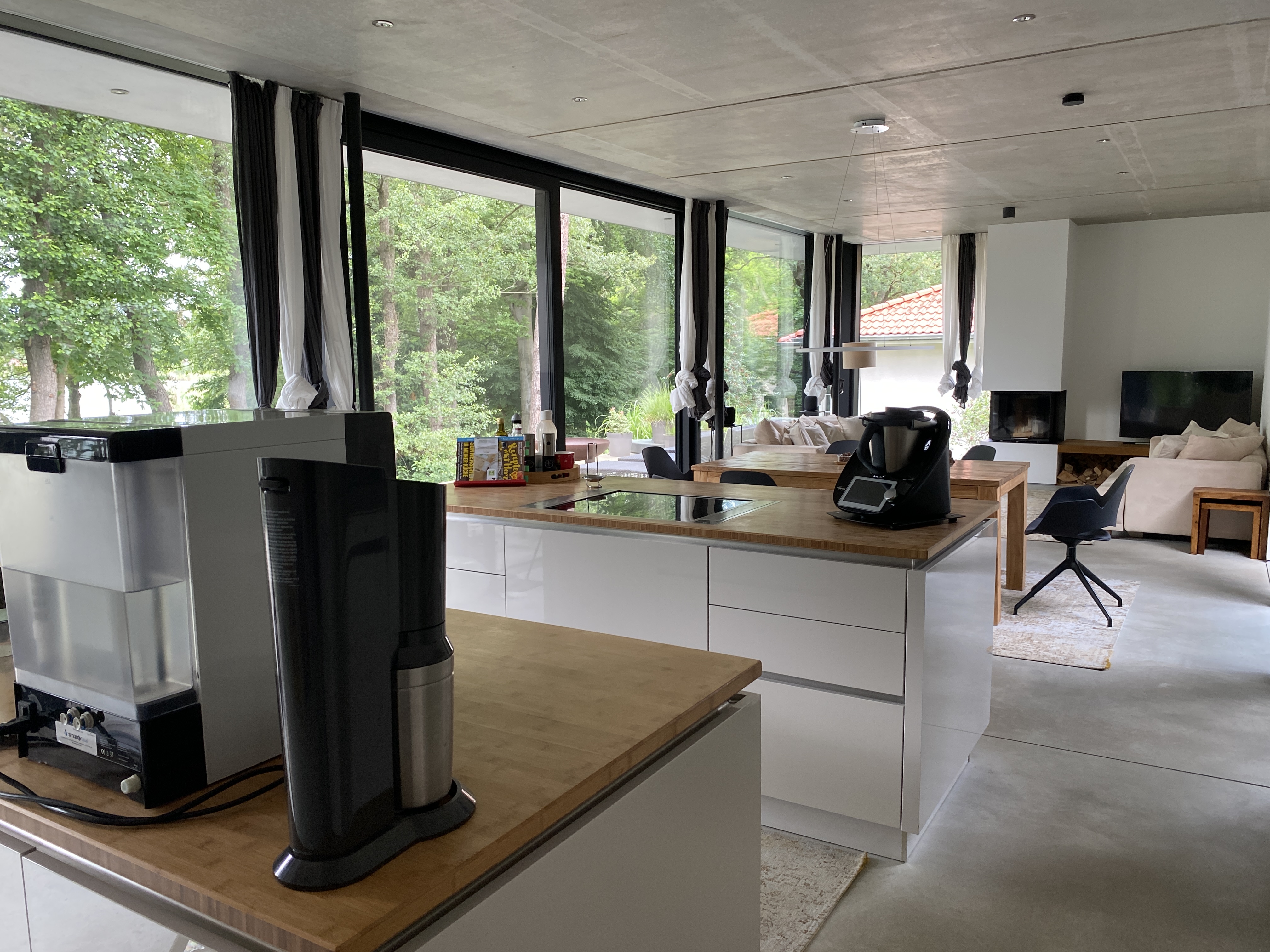 Immersa in un bosco sereno e costeggiata da un lago tranquillo, questa splendida casa moderna offre un perfetto connubio tra bellezza naturale ed eleganza architettonica. La casa è caratterizzata da ampie pareti vetrate che offrono una vista senza ostacoli sul verde lussureggiante e sul tramonto che si staglia sul lago, creando un ambiente di pace e tranquillità. Questa casa è stata progettata con un approccio moderno e minimalista, integrando finiture di alto livello come il legno lucido, eleganti elettrodomestici da cucina e spazi ampi e ariosi che si fondono perfettamente con l'ambiente esterno.