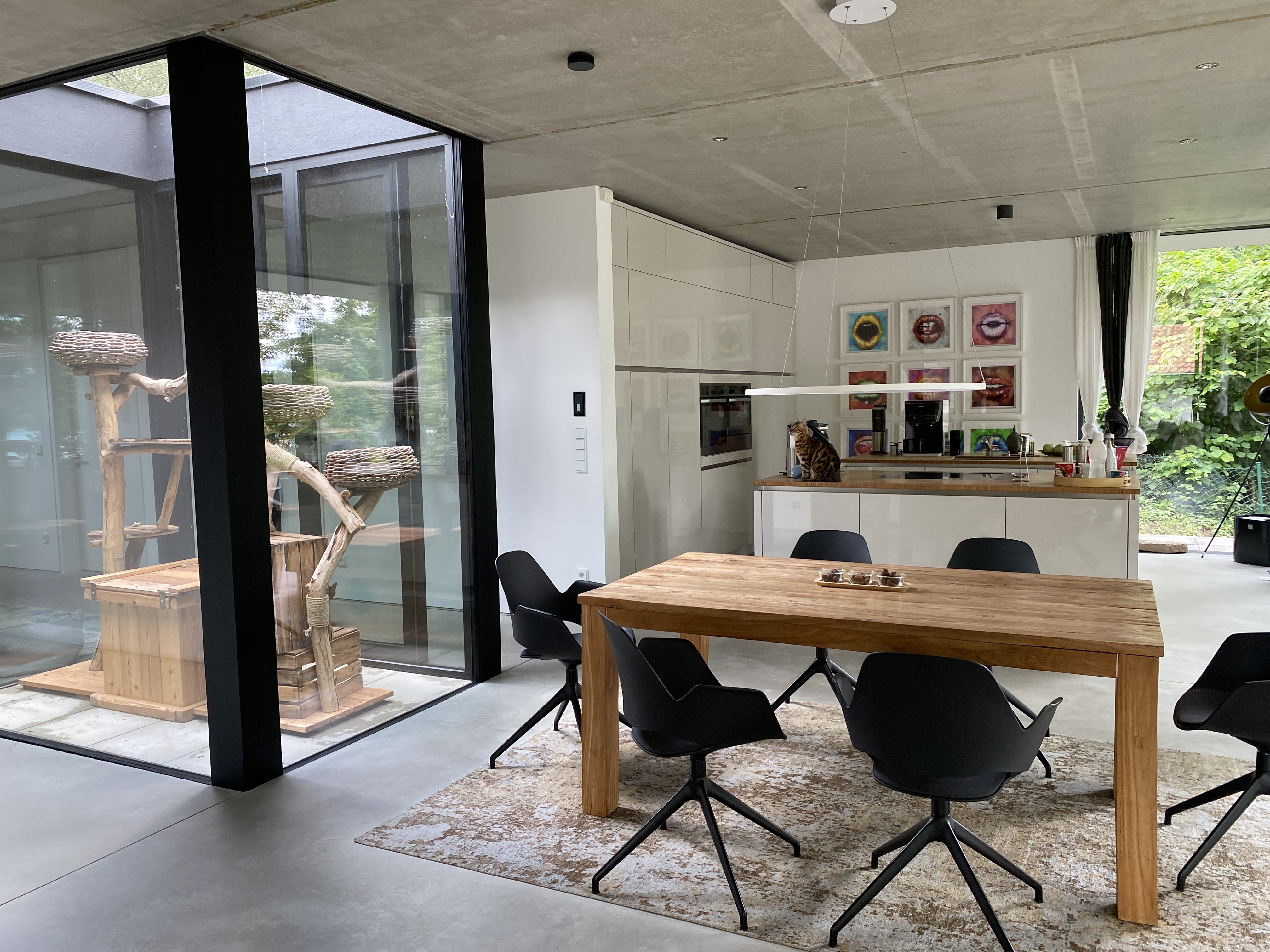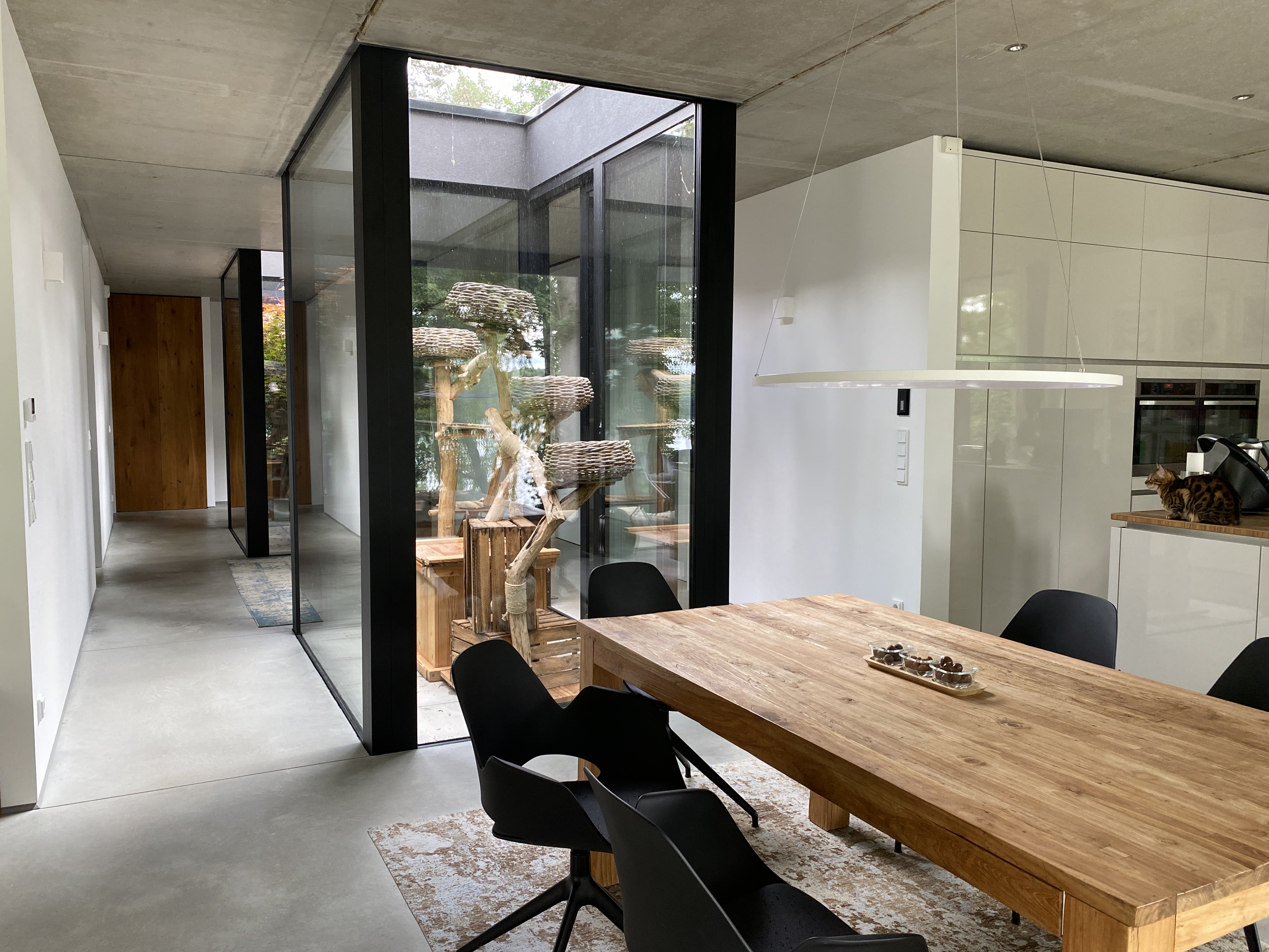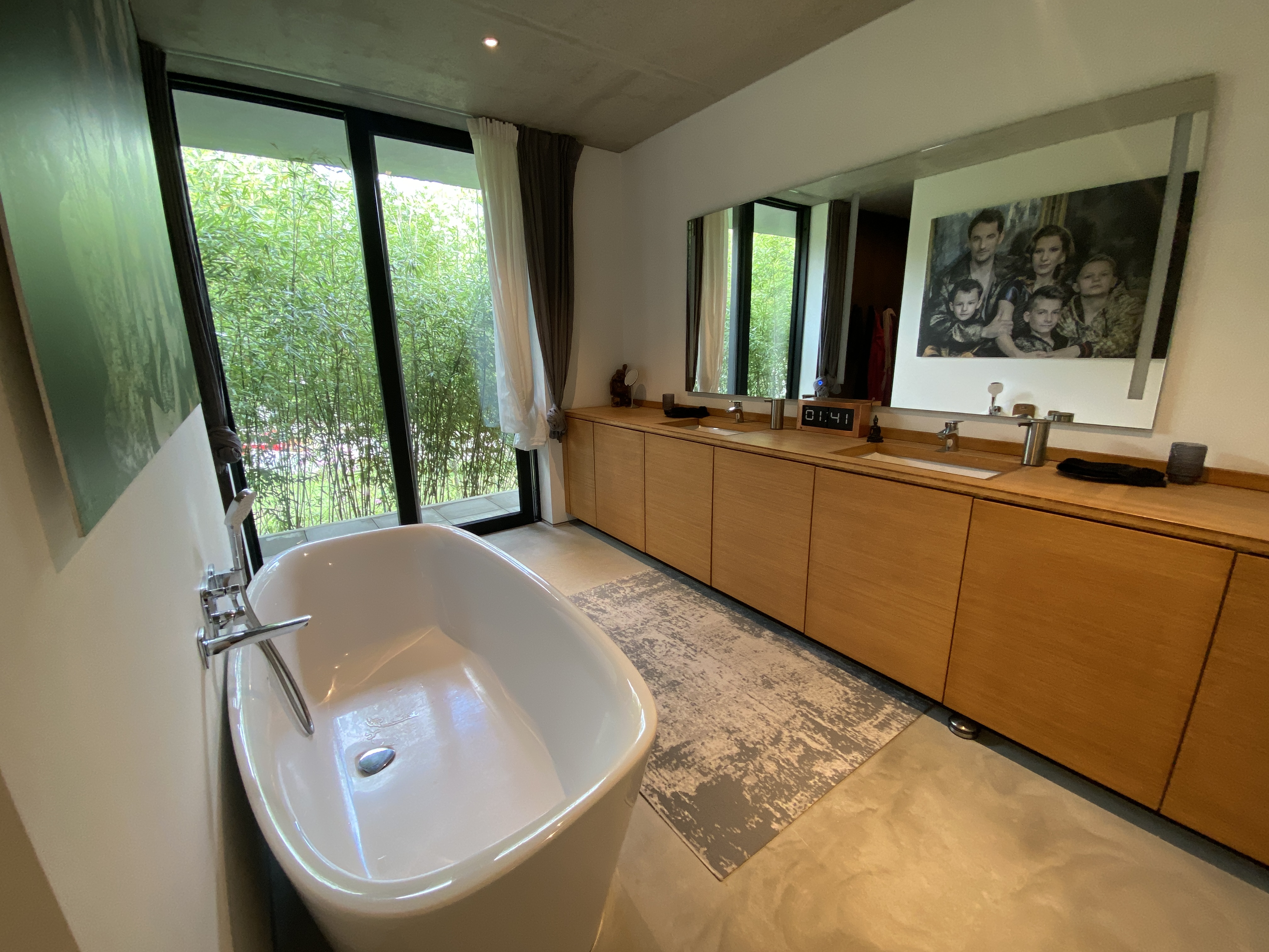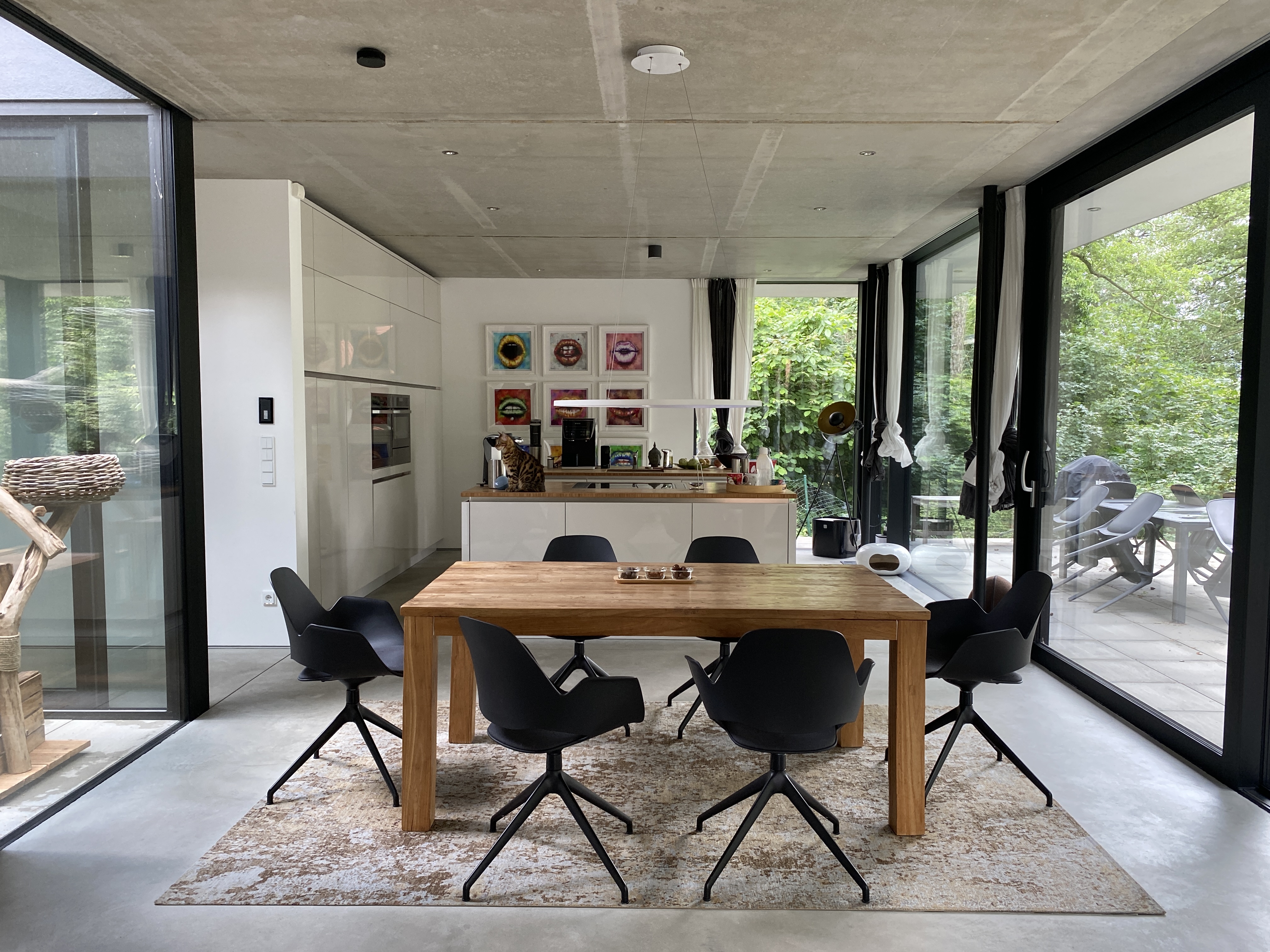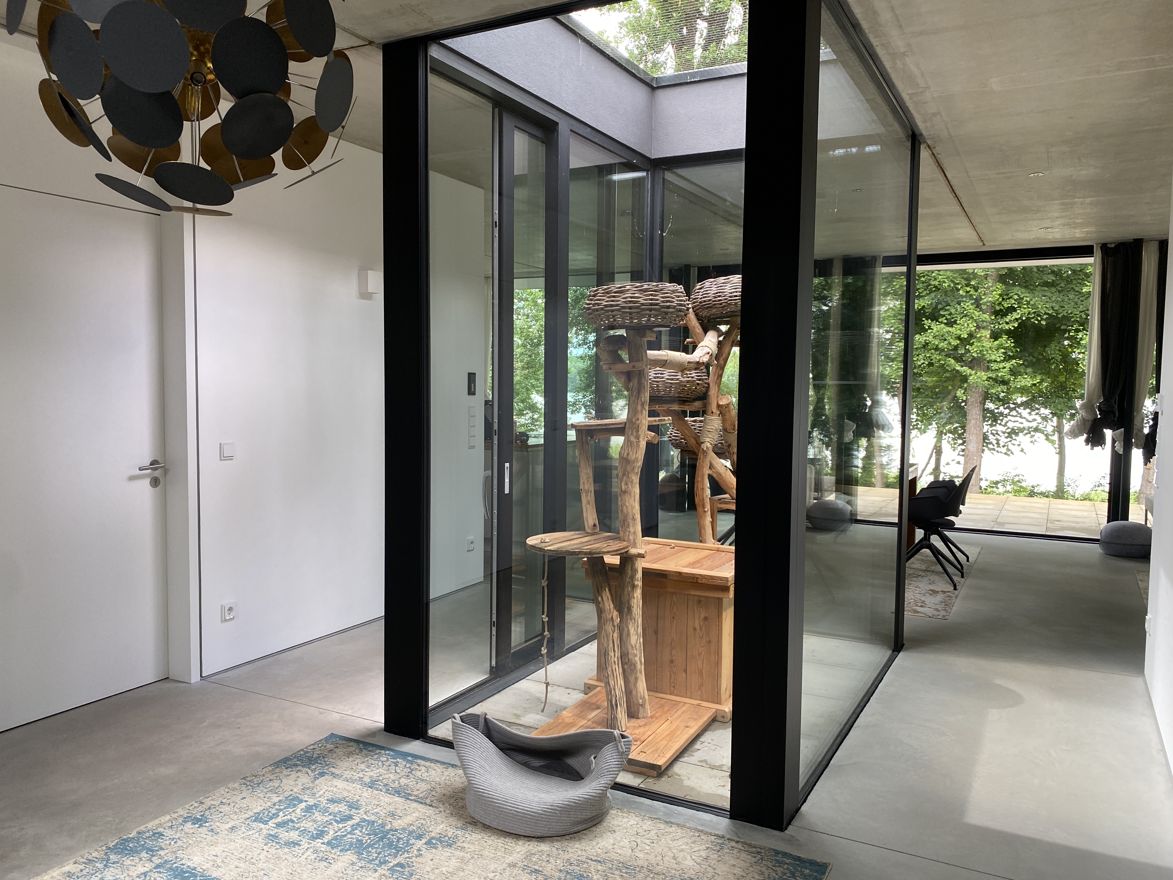 Immersa in un bosco sereno e costeggiata da un lago tranquillo, questa splendida casa moderna offre un perfetto connubio tra bellezza naturale ed eleganza architettonica. La casa è caratterizzata da ampie pareti vetrate che offrono una vista senza ostacoli sul verde lussureggiante e sul tramonto che si staglia sul lago, creando un ambiente di pace e tranquillità. Questa casa è stata progettata con un approccio moderno e minimalista, integrando finiture di alto livello come il legno lucido, eleganti elettrodomestici da cucina e spazi ampi e ariosi che si fondono perfettamente con l'ambiente esterno.