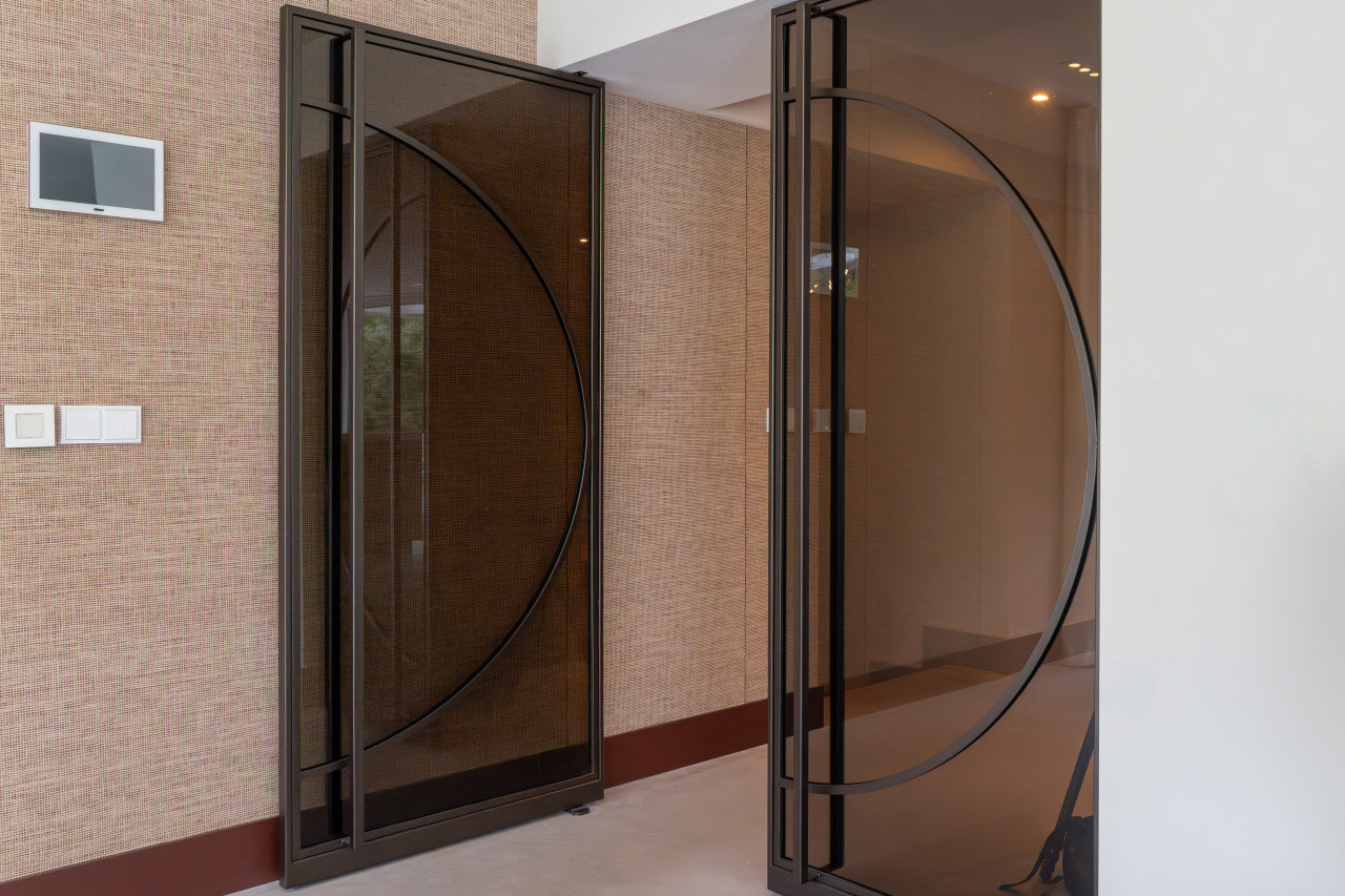All'esterno, la villa si apre su un'ampia terrazza e un giardino paesaggistico con moderni arredi da esterno, che offrono molteplici prospettive di ripresa. L'architettura mescola vetro, legno e volumi geometrici, conferendo un'estetica contemporanea ma senza tempo.