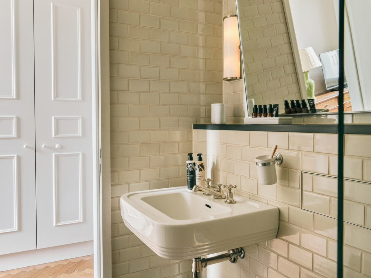 Le camere presentano una gamma di interni su misura: da spazi luminosi e ariosi con luce naturale che filtra da alte finestre, ad ambienti più umidi e ricchi di texture con poltrone di velluto, tappeti a fantasia e arredi personalizzati. Gli ospiti possono rilassarsi in letti eleganti vestiti con lenzuola bianche, completati da testiere in stile antico, illuminazione moderna di metà secolo e accenti di legno caldo.