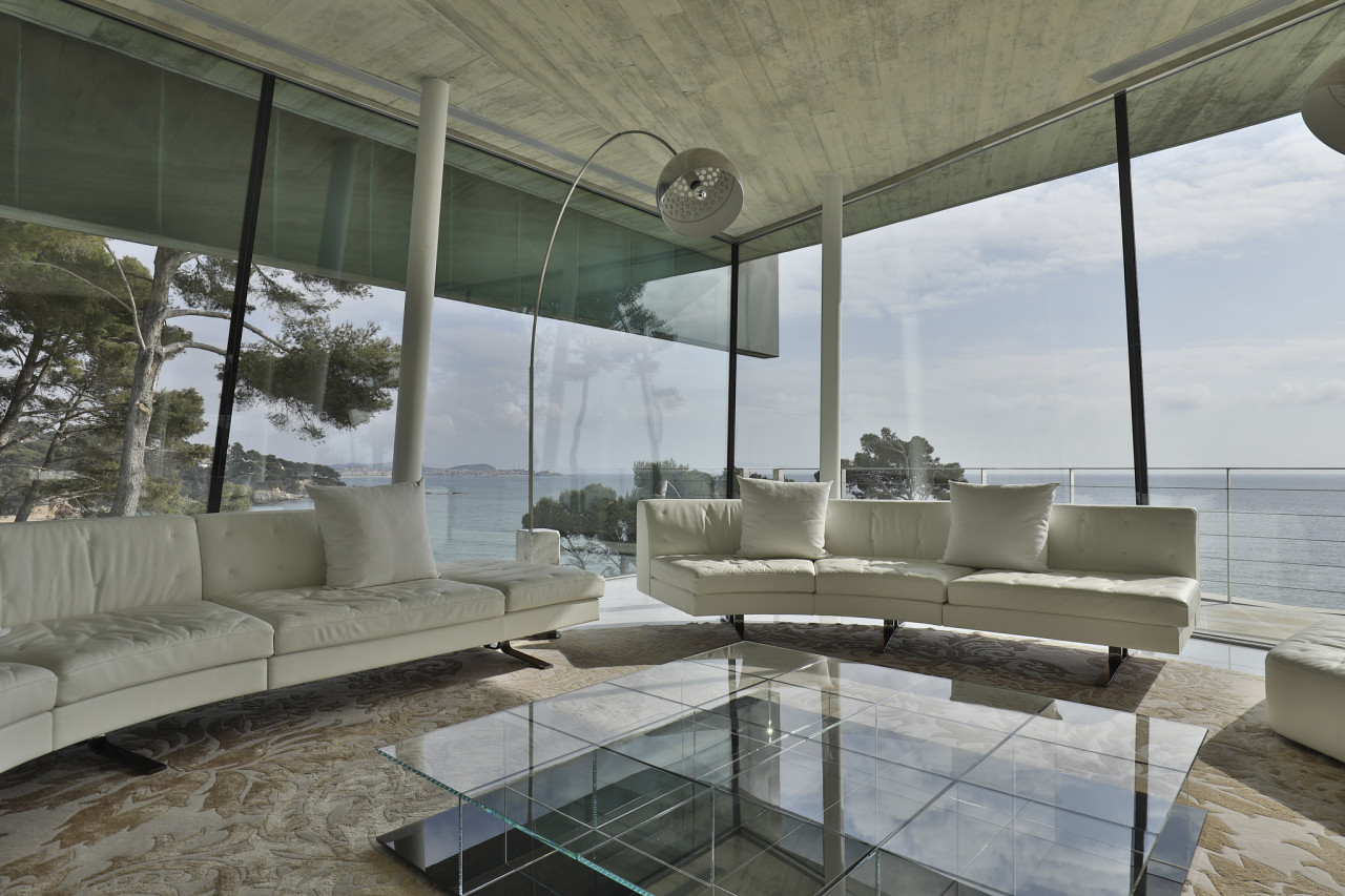 Casa Elle is an extraordinary seafront architectural masterpiece that blends sculptural design with understated luxury, creating a setting that feels both cinematic and profoundly serene. Vast panes of glass frame uninterrupted views of the Mediterranean, allowing the shifting colours of the sea and sky to become a permanent backdrop to daily life. Inside, polished stone floors, exposed concrete ceilings, and precise geometric forms create a gallery-like calm, softened by curated furnishings and the natural daylight that pours through every angle. The home flows around reflective water features and an interior courtyard pool, where a sculptural figure stands like a quiet centrepiece, reinforcing the property’s art-forward identity. Elegant corridors lined with wooden slats, dramatic staircases framed in glass, and open-plan living spaces form a continuous play of texture, light, and perspective. Outdoor terraces appear to hover above the coastline, offering sweeping panoramic views and generous space for entertaining. The poolside area connects effortlessly with the surrounding landscape, capturing the essence of Mediterranean indoor–outdoor living. Every corner of Casa Elle feels intentional, architectural, and deeply atmospheric — a bold, modern retreat made for high-end productions, editorial shoots, and clients seeking an iconic location that delivers visual impact from every angle.