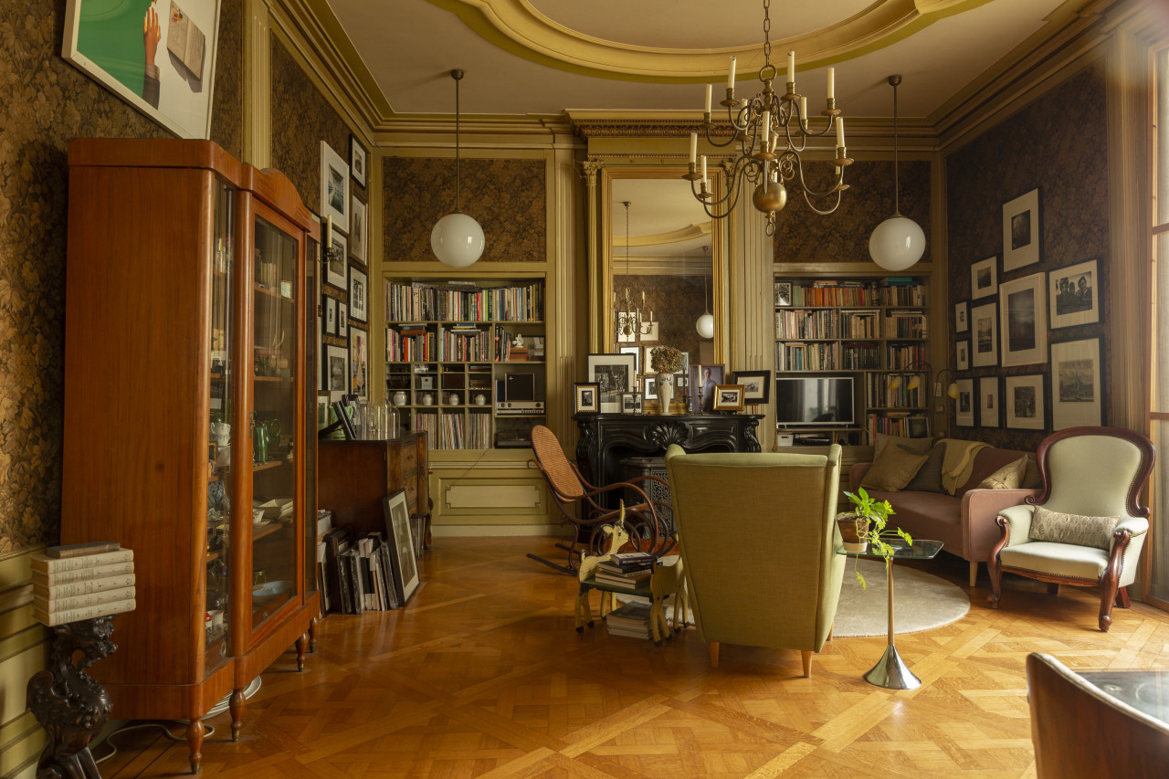 Inside, the house features high ceilings, intricate moldings, parquet floors, and an art-filled interior that evokes timeless sophistication. The rooms are styled with antique furnishings, statement lighting, and gallery-style wall arrangements, offering a classic European aesthetic with layered texture and depth. Bedrooms are calm and bright, while the dining room and lounge areas exude character and warmth, perfect for lifestyle shoots, interviews, or short film scenes.