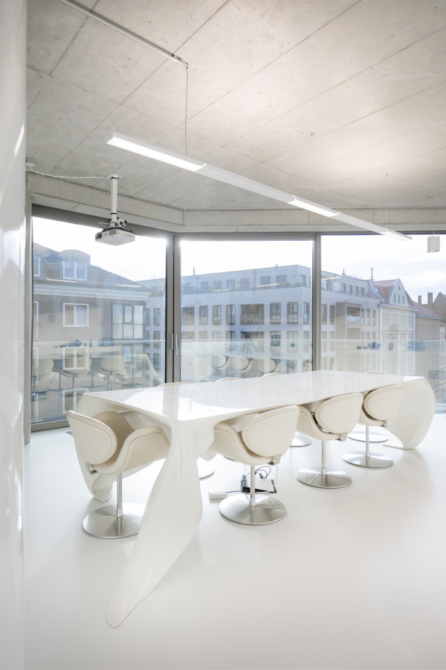 Included are stylish designer tables and chairs, comfortable designer sofa for relaxation, state-of-the-art equipment including projector, whiteboards, TV, and WLAN, blackout curtains ensuring optimal ambiance, a balcony, fully equipped kitchen with fridge and coffee machine, elevator with separate entry and bell and convenient WC facilities.