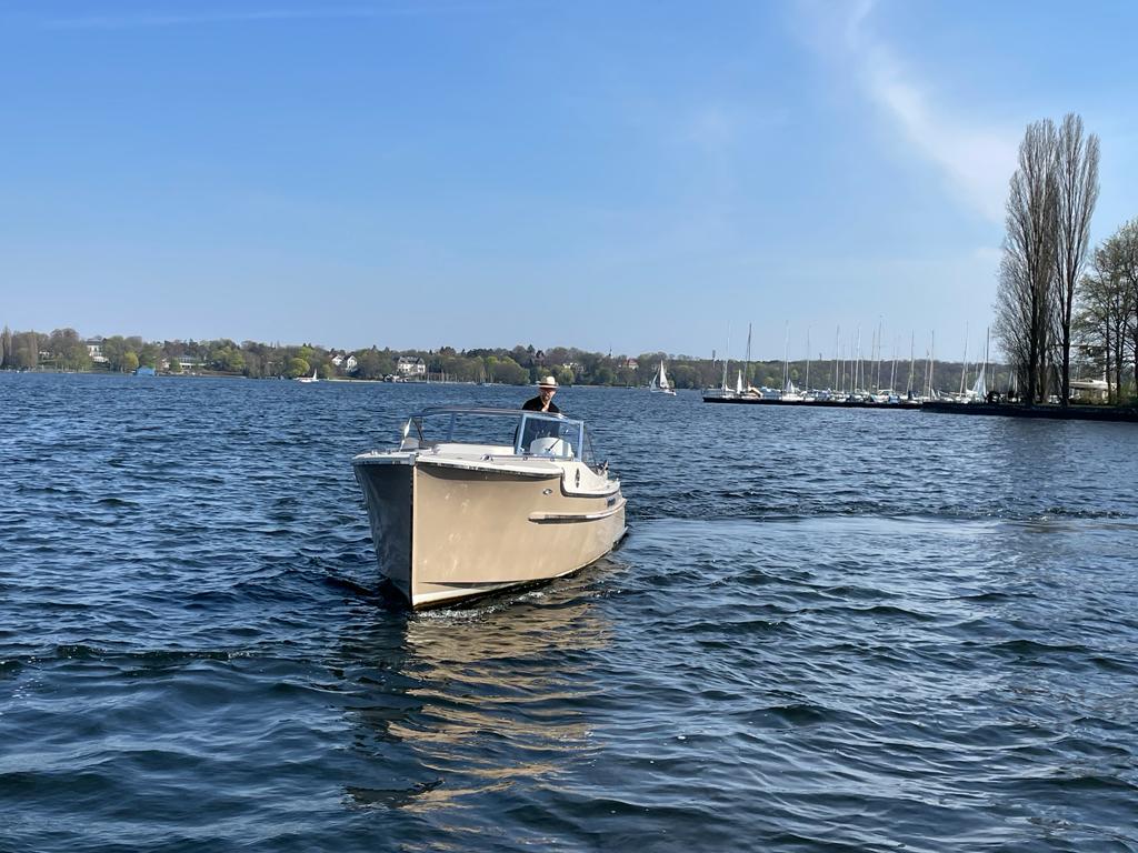 The boat is located in the Great Wannsee (Großer Wannsee) in Berlin. From there, the areas of Potsdam, Sacrow, Kladow, Gatow and Spandau can be reached relatively quickly. To the Berlin city center you need about 4 to 5 hours by boat.