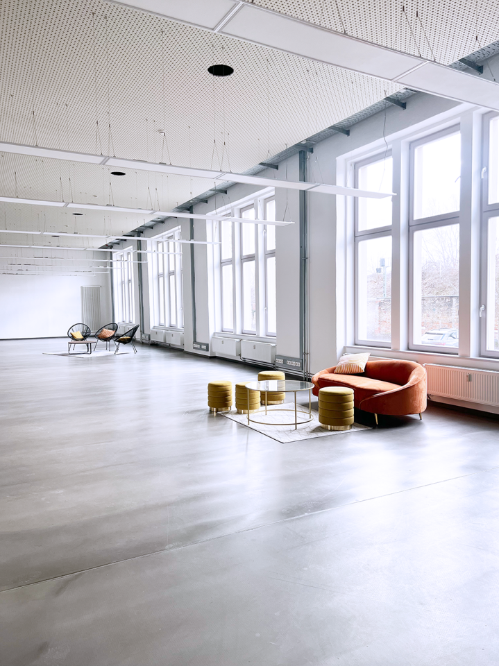 Whether you’re planning a conference, seminar, workshop, studio shoot, pop-up event, product presentation, corporate get-together, or film production, our versatile and modern space provides a fully customizable environment to suit your needs. Ideally located near Treptower Park, the venue offers 712 m² of fully renovated space with a freight elevator, modern sanitary facilities, and exclusive on-site parking, ensuring a seamless and successful event experience.