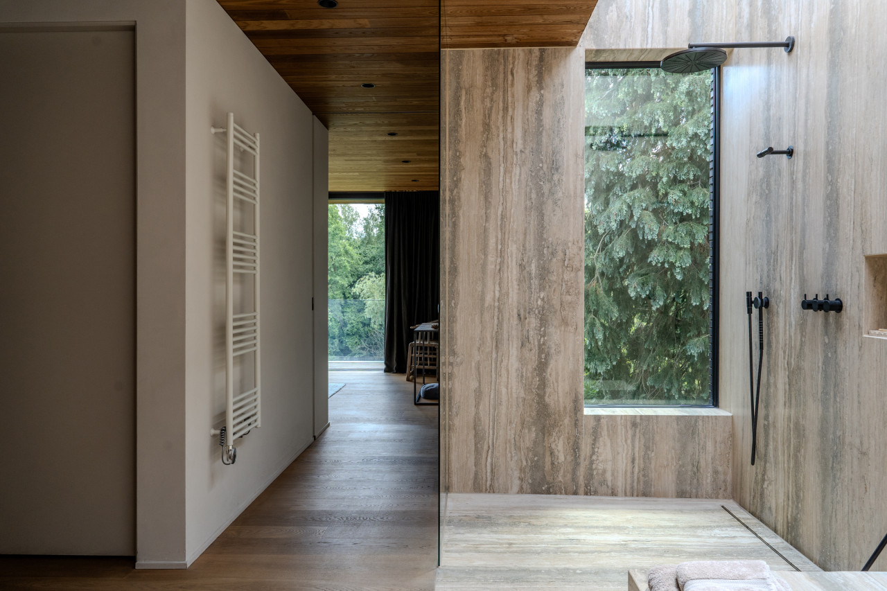 This location in Amsterdam is a breathtaking villa-loft that merges minimalist architecture with organic materials and lush surroundings, making it a premium choice for photo and film productions as well as high-end events. The open layout, framed by full-height glass sliding doors, seamlessly connects indoor and outdoor living, flooding every room with natural light and offering direct visual access to the surrounding greenery and the private swimming pond. Every corner of the interior is designed with precision and warmth—from the sculptural wooden kitchen and sleek concrete floors to custom-built shelving, high-end finishes, and curated design pieces. The living spaces are layered with textures and neutral tones that provide a perfect backdrop for cinematic visuals, editorial shoots, or intimate gatherings. The atmosphere is tranquil yet luxurious, with features such as a library corner, spa-like bathrooms, a serene master suite, and multiple seating zones that all speak to modern comfort and style. The exterior is equally cinematic, with landscaped gardens, shaded terraces, and a natural pool edge surrounded by trees, ideal for fashion campaigns, brand activations, or immersive guest experiences. Tucked away in a peaceful part of Amsterdam with easy access to the city center, this villa-loft offers total privacy, exceptional light, and an architecturally rich setting that elevates any production or exclusive event into something visually and emotionally memorable.