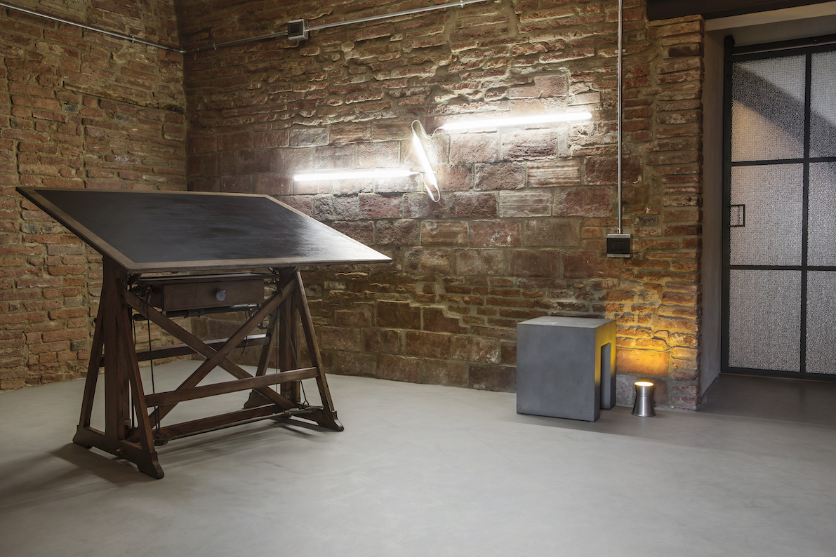 Ontwikkeld op twee verdiepingen, bestaat de eerste verdieping uit twee grote met elkaar verbonden open ruimtes met panoramische ramen die uitkijken op de Toscaanse heuvels; een meer gereserveerde slaapkamer/studio met eigen badkamer ligt aan hun kant. Het niveau eronder is de "onverwachte plek": een hypogeum spa/zwembad dat doet denken aan Romeinse thermale baden.