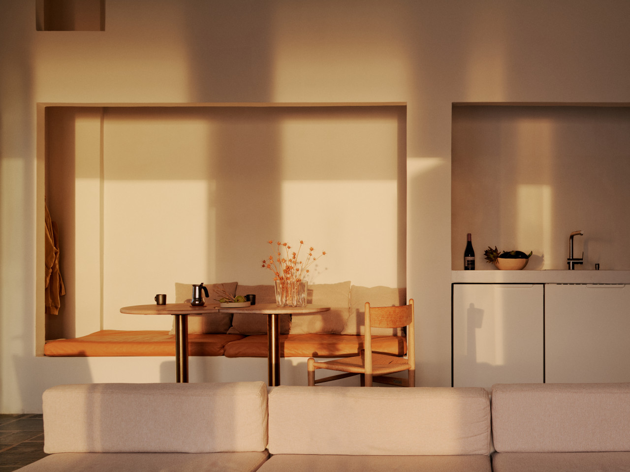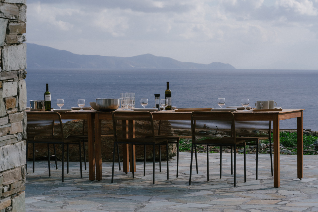 Het uitzicht op zee van 200 graden gaat gepaard met kustwinden. De verschillende buitenruimtes die worden gevormd door de witte kubussen zijn echter in verschillende richtingen gericht, zodat er altijd een beschutte plek is, ongeacht de sterkte of oriëntatie van de wind. Twee trappen verbinden het huis met het water aan weerszijden van het schiereiland: een pad leidt naar kliffen en rotsen aan de oostkant, perfect om in zee te duiken, terwijl de andere afdaalt naar een klein zandstrand aan de zuidwestkant.